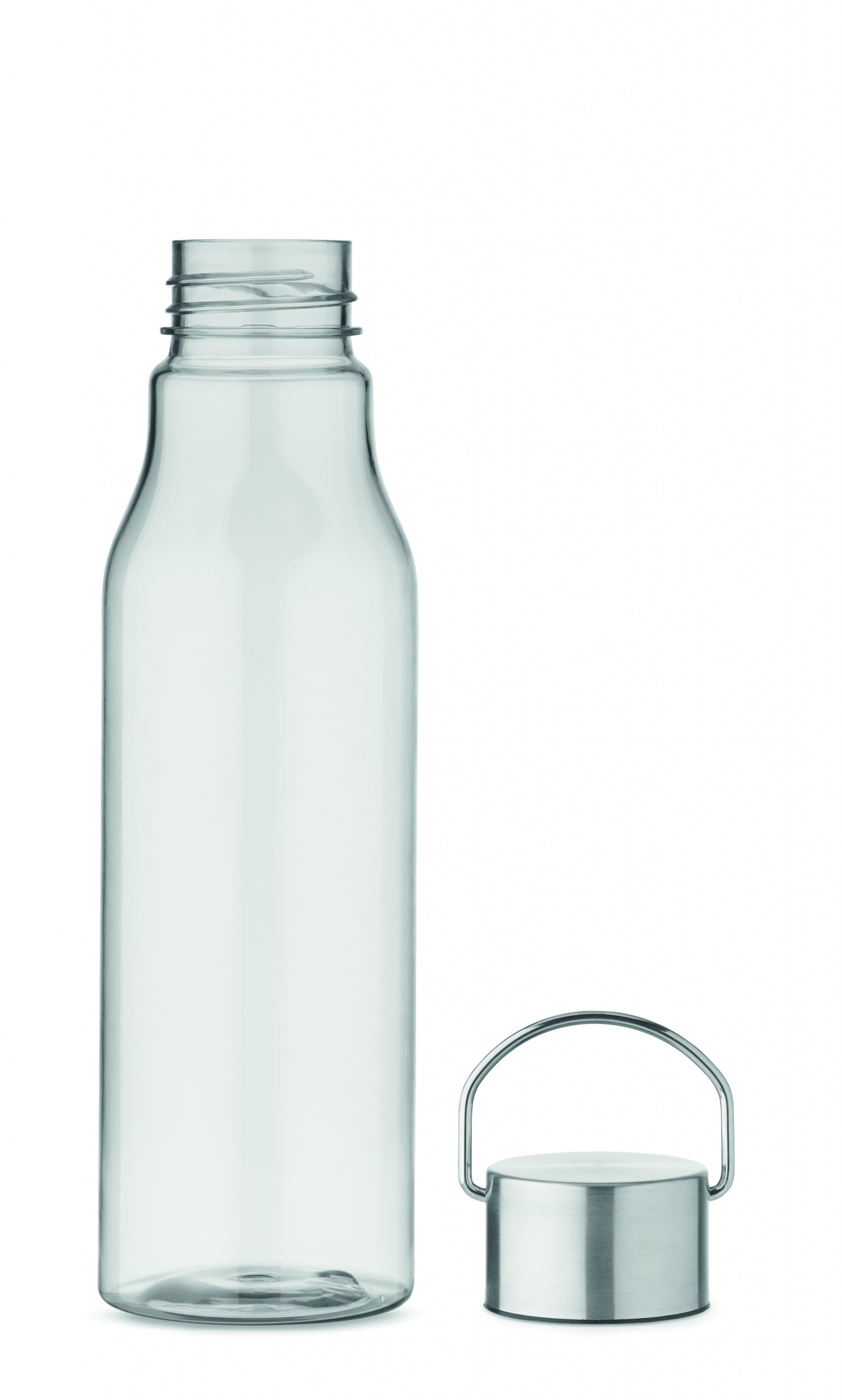 Juomapullo BPA-vapaata RPET-muovia jossa on ruostumattomasta teräksestä valmistettu kahvallinen korkki. Vuotamaton. Tilavuus: 600 ml.