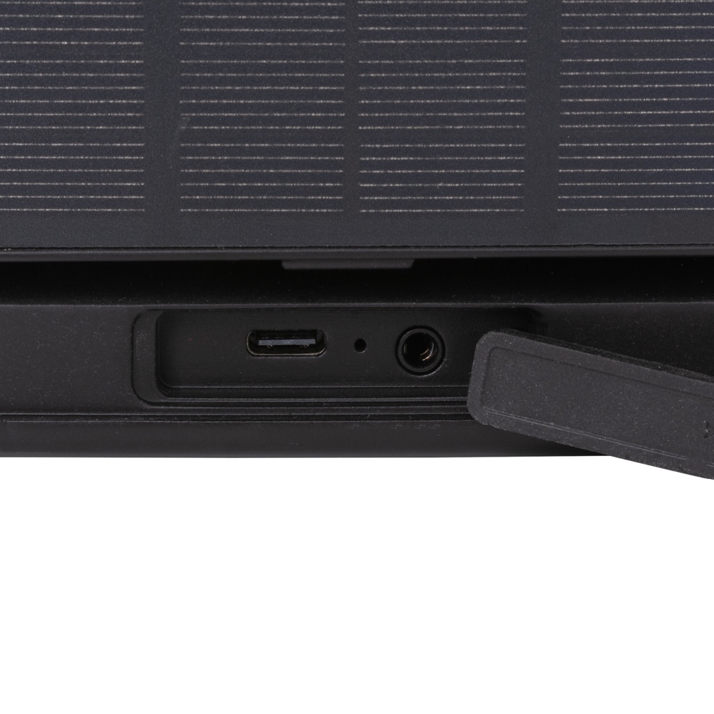 Voimakas 12W langaton kaiutin, jossa on integroitu suuri aurinkopaneeli. Valmistettu RCS-sertifioidusta kierrätys-ABS:stä. Kierrätetyn materiaalin kokonaismäärä: 16% tuotteen kokonaispainosta. RCS-sertifikaatti takaa täysin sertifioidun kierrätysmateriaalien toimitusketjun. Kaiutin käyttää korkealaatuisia monokiteisiä aurinkopaneeleja, joissa on 19% muuntokerroin. Latausnopeus riippuu olosuhteista. Sisäänrakennettu LED-lamppu, jonka avulla voit käyttää kaiutinta myös auringonlaskun jälkeen. Kaiuttimessa on 2000 mAh akku, joka takaa jopa 8 tunnin toiston ja BT5.3:n saumattoman yhteyden ja selkeän äänen. Yhteysalue jopa 10 metriä. Mikrofonilla ja vastaustoiminnolla puheluihin. Aurinkolatausnopeus: 5V/300mA. Pakattu FSC-mix FSC® -laatikkoon. Mukana RCS-sertifioitu kierrätetty TPE-latauskaapeli. Tuote ja tarvikkeet ovat 100% PVC-vapaita.