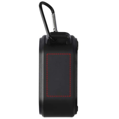 Logo trade liikelahja mainoslahja tuotekuva: Solo 3 W:n IPX5 RCS -kierrätetystä muovista valmistettu, aurinkoenergialla toimiva Bluetooth®-kaiutin jousihaalla