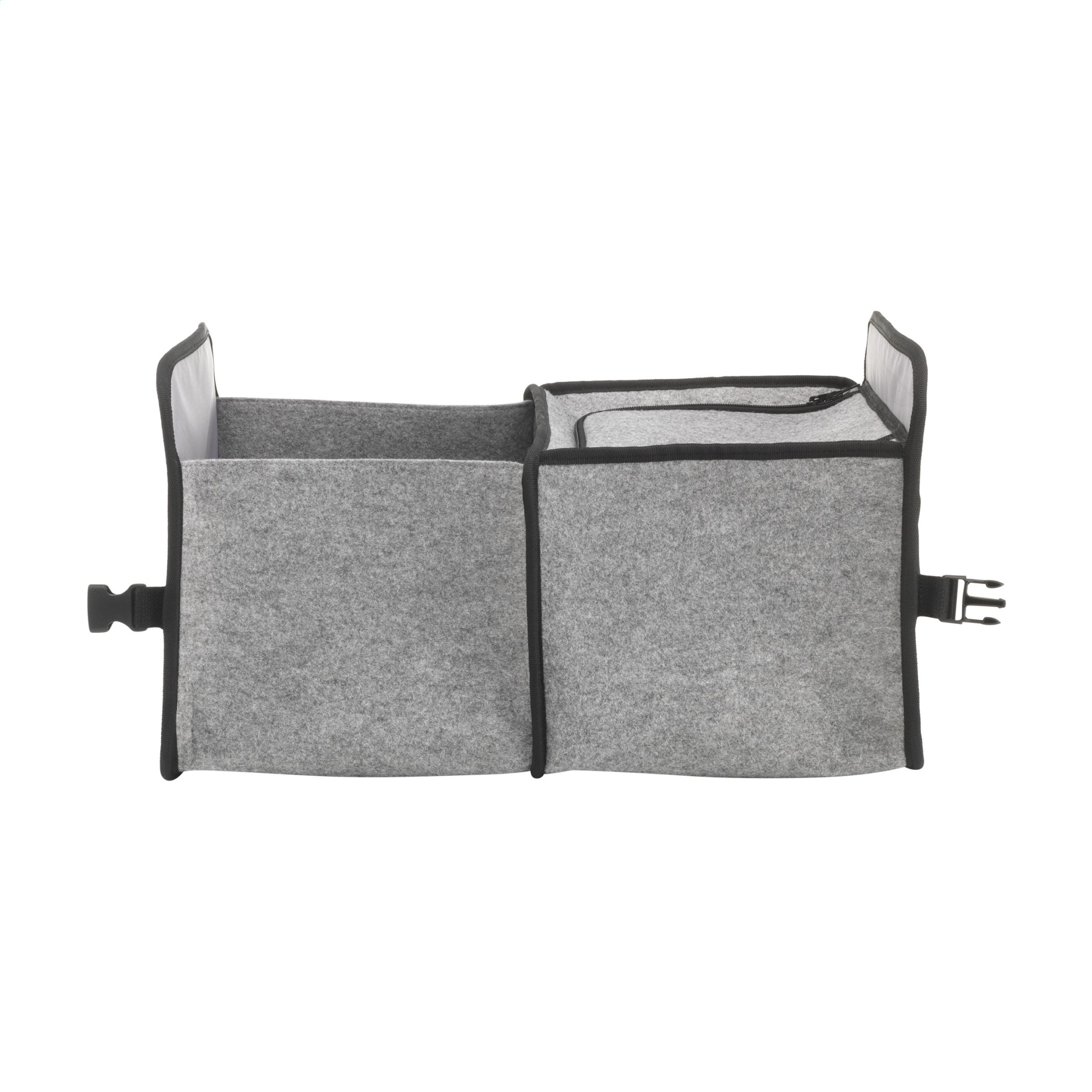 Vau! Käytännöllinen, kokoontaitettava jäähdytyslokerolla varustettu järjestely, joka on suunniteltu auton tavaratilaan. Valmistettu tukevasta RPET-huovasta. Pääsäilytyslokerossa on pohjalevy ja tilava lukittava jäähdytyslokero. Etutasku ja verkkosivutasku tarjoavat lisää säilytystilaa. Järjestäjälokero sopii erinomaisesti useiden pienempien tavaroiden säilyttämiseen ja viileä säilytyslokero on ihanteellinen jäähdytettyjen ruokien kuljetukseen. Meas. laajennettu 31 x 28 x 48 cm. Meas. taitettuna 31 x 28 x 6 cm. Kapasiteetti n. 41 litraa. GRS-sertifioitu. Kierrätysmateriaalia yhteensä: 56 %.