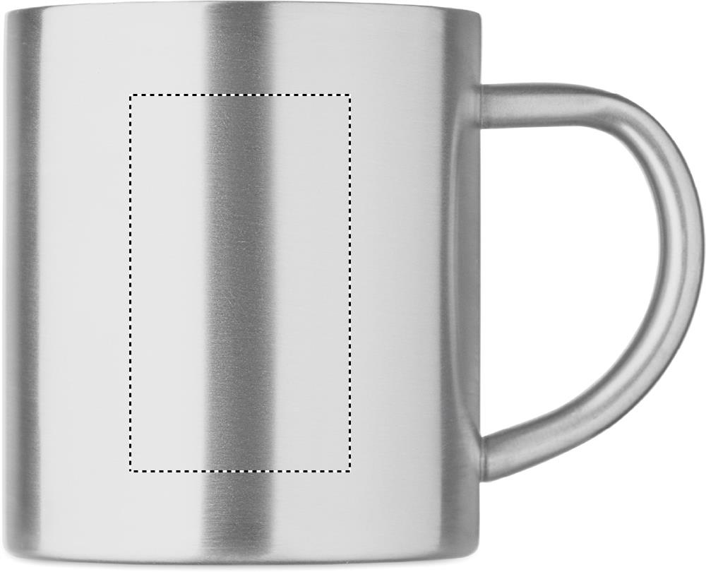 Kaksinkertainen kierrätetystä ruostumattomasta teräksestä (90 % kierrätettyä ruostumatonta terästä ja 10 % ruostumatonta terästä) valmistettu muki. Tilavuus: 260 ml.