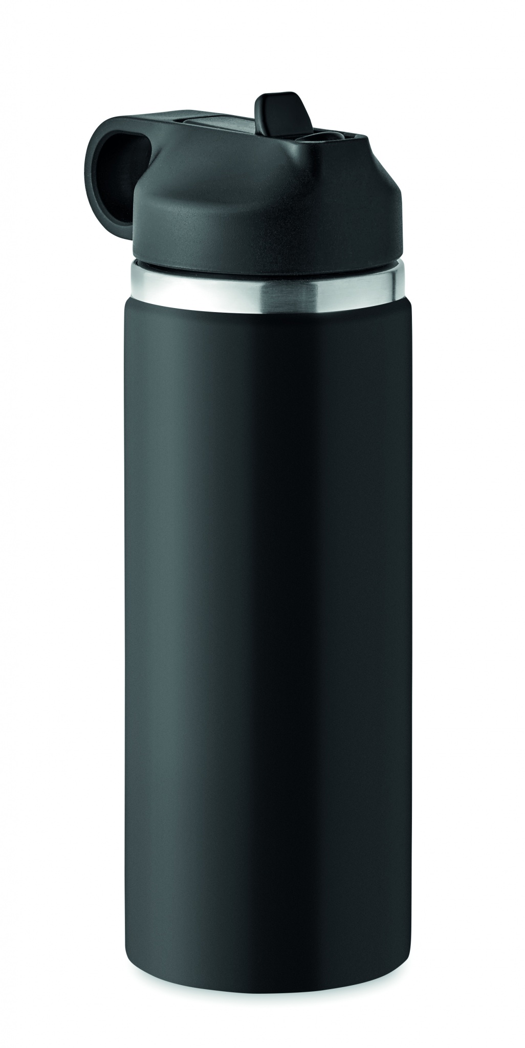 Kaksiseinäinen kierrätetystä ruostumattomasta teräksestä (90 % kierrätettyä ruostumatonta ja 10 % ruostumatonta terästä) valmistettu eristetty tyhjiöpullo, jossa on PP:stä valmistettu kahvallinen korkki ja sisäänrakennettu pilli. Vuotamaton. Tilavuus: 500 ml.