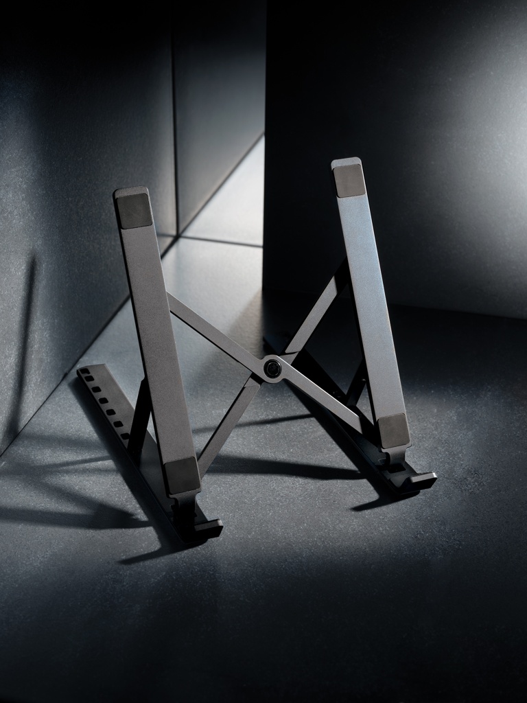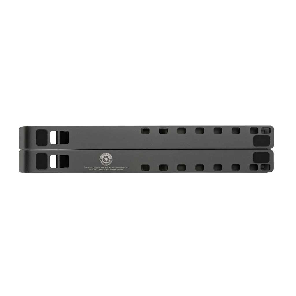 Alumiininen tietokonepidike valmistettu RCS (Recycled Claim Standard) sertifioidusta alumiinista ja TPU:stä. Kierrätetyn materiaalin kokonaismäärä:99% perustuen tuotteen painoon. RCS sertifiointi varmistaa kierrätetyn materiaalin täysin sertifioidun toimitusketjun. Pidike on taitettavissa ja siihen sopii mikä tahansa jopa 15.6" kannettava. Pidike voidaan asettaa 8 eri asentoon ihanteellisen ergonomisen korkeuden takaamiseksi. Alumiini ei menetä sille ominaisia piirteitä kierrätysprosessissa ja voidaan siksi kierrättää loputtomasti. Sopii lähes kaikille kannettaville ja tableteille. Pohjassa RCS sertifioiduit TPU-nauhat, jotka estävät liukumisen. Pakattu FSC®-sekoituksesta valmistettuun pakkaukseen.