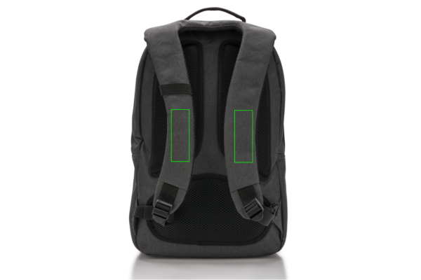 Täydellinen työhön ja vapaa-aikaan. Tämä reppu 600D polyesterista tarjoaa tyylikkään tavan kuljettaa tavaroita. Osasto 15” kannettavalle ja toinen osasto tabletille. Säädettävät olkahihnat ja pehmustettu takapaneeli. Tilava etuosasto kengille tai urheiluvaatteille.