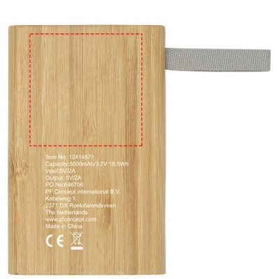 Bambusta tehty varavirtalähde, joka tarjoaa 5 000 mAh:n varavirran matkapuhelimille tai muille digitaalisille laitteille. Siinä on LED-merkkivalot ja RPET-materiaalista valmistettu hihna. Mukana Mikro-USB-kaapeli. Pakattu lahjapakkaukseen ja mukana ohjekirja (molemmat valmistettu ympäristöystävällisestä materiaalista). Koska bambu on luonnollinen tuote, tuotteen värissä ja koossa voi olla pieniä eroja, jotka voivat vaikuttaa logomerkinnän lopulliseen ulkonäköön.