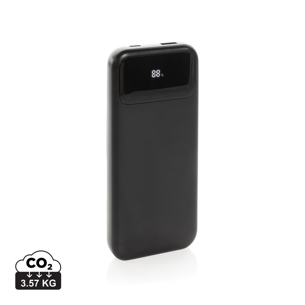 All in one -pikalataava virtalähde, jossa on integroidut kaapelit ja virtanäyttö. 10 000 mahin virtalähde on varustettu integroidulla C-tyypin ja integroidulla Apple Lightning -kaapelilla, joten voit helposti liittää sen laitteeseesi ja aloittaa mobiililaitteesi pikalatauksen. Yhdellä ylimääräisellä C-tyypin portilla ja USB A -portilla, johon voit liittää oman latauskaapelisi. Täyteen ladattuna virtapankki antaa sinulle riittävästi energiaa ladata matkapuhelimesi jopa neljä kertaa uudelleen. Virtapankki sisältää pitkäkestoisen A-luokan 10.000 mAh:n litiumpolymeeriakun. Valmistettu kierrätetystä ABS:stä ja kierrätetystä TPE:stä. Kokonaiskierrätyspitoisuus: 21 % tuotteen kokonaispainosta. RCS-sertifiointi takaa täysin sertifioidun toimitusketjun kierrätysmateriaaleille. Digitaalisella näytöllä, joka näyttää jäljellä olevan virran. Pakattu FSC®-kraftpakkaukseen. PVC-vapaa. USB-A lähtö 5V⎓3.0A, 9V⎓2A, 12V⎓1.5A; USB-C lähtö 5V⎓3.0A, 9V⎓2.22A, 12V⎓1.67; Type-C tulo 5V⎓3.0A, 9V⎓2A, 12V⎓1.5A;