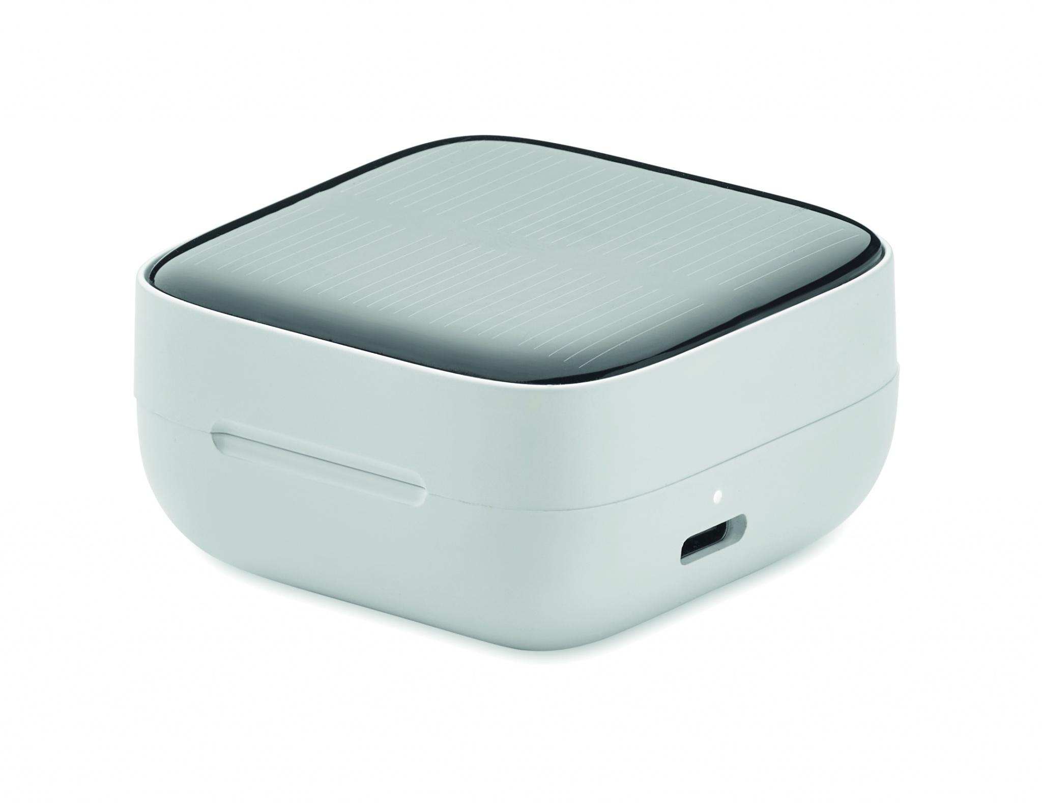 ABS True Wireless Stereo (TWS) 5.3 langattomat korvanapit mikrofonilla ja 30 mAh akulla. Toistoaika n. 4 tuntia. Aurinkokennolaturi. Automaattinen pariliitos. Mukana C-tyypin latauskaapeli ja 200 mAh latausasema.