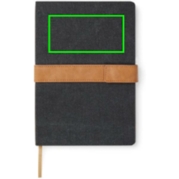 Take notes in style with our A5 notebook, featuring a canvas cover with a convenient PU-band and magnet closure. The notebook contains 80 sheets of 80 gsm RCS recycled paper with lined pages, making it perfect for all your note-taking needs. Made from 65% RCS (Recycled Claim Standard) certified recycled paper, the notebook is a responsible choice. The RCS certification ensures a fully certified supply chain of the recycled materials used, emphasizing our commitment to responsible sourcing. The total recycled content of the notebook is based on its total weight.
