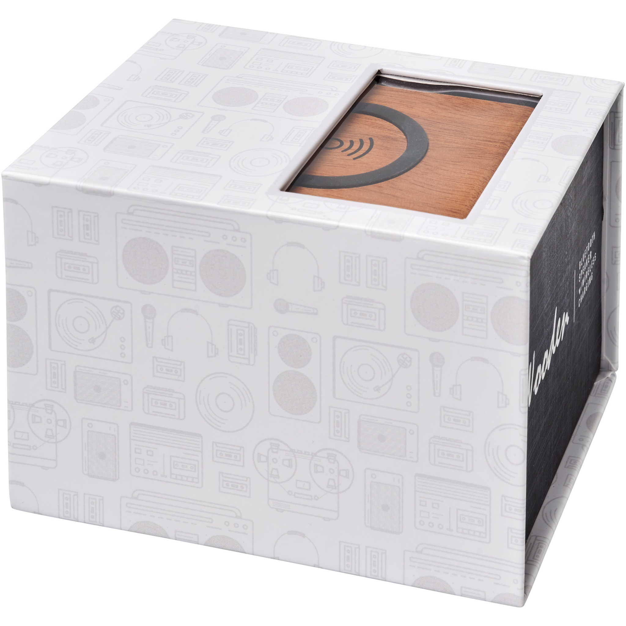 Viimeisintä tekniikkaa. Wooden Bluetooth® -kaiutin sopii täydellisesti toimistoon tai kotiin. Kaiuttimen teho on 3 wattia, joten sen tuottama ääni on kristallinkirkas. Lisäksi kaiuttimen yläosa toimii myös langattomana latausalustana. Sillä voi ladata minkä tahansa langattomaan lataukseen soveltuvan laitteen. Sisäänrakennettu 1 200 mAh:n akku takaa musiikkinautinnon yli 6 tunniksi. Sisäänrakennetut musiikin säätimet ja mikrofoni hands free -käyttöä varten. Bluetooth®-toiminta-alue on 10 metriä (33 jalkaa). Bluetooth®-versio 4.2. Valmistettu aidosta puusta. Siksi tuotteiden ulkonäkö saattaa poiketa hieman toisistaan. Toimitetaan ensiluokkaisessa Avenue-lahjapakkauksessa.