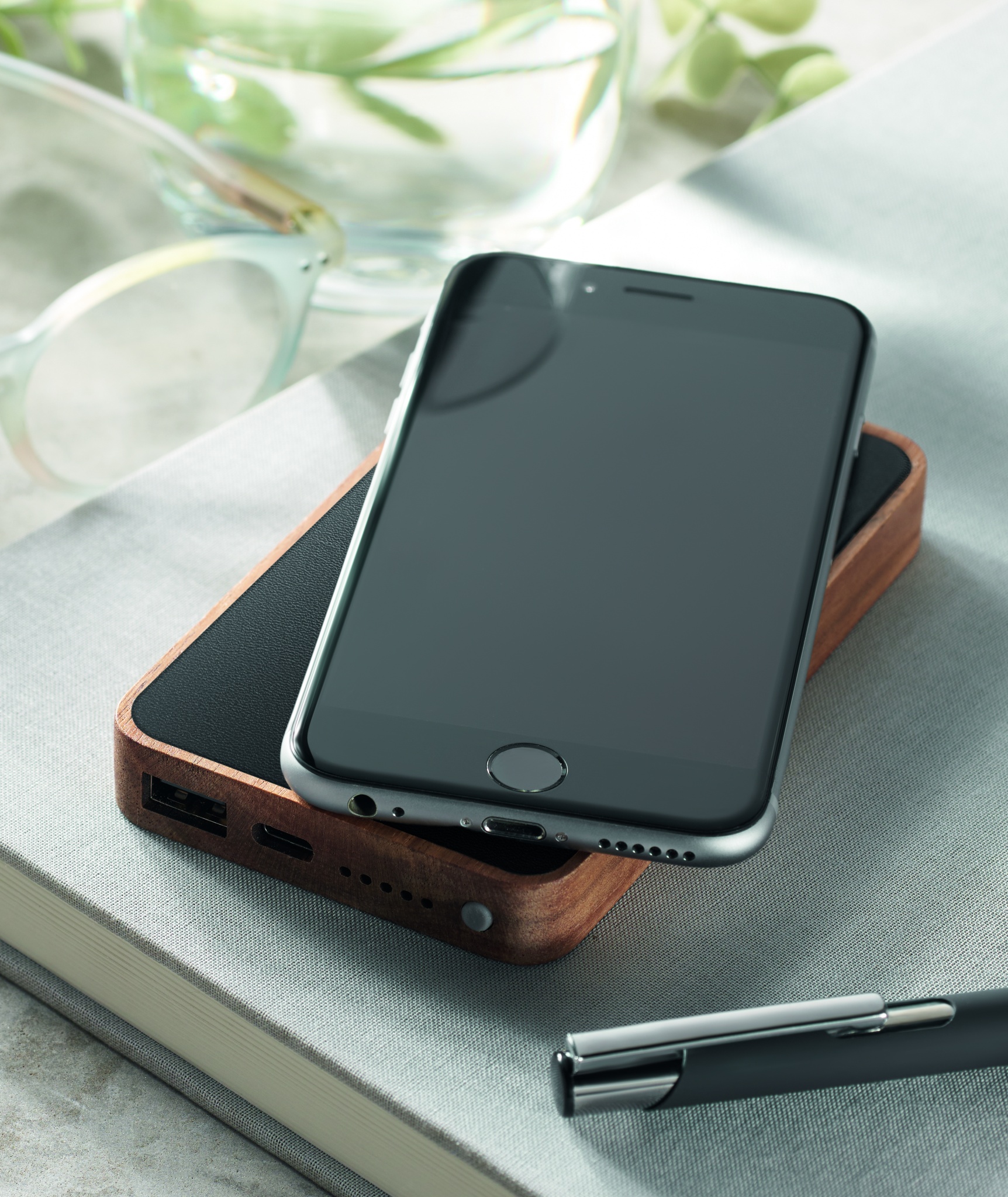 15 W belaidis įkrovimas ir 4000 mAh maitinimo blokas su akacijos medžio korpusu ir perdirbtu PU, kurio 58 % perdirbta (40 % perdirbto poliesterio ir 18 % perdirbto PU). Palaiko greito įkrovimo technologiją (20W). Įvestis / išvestis: C tipas.