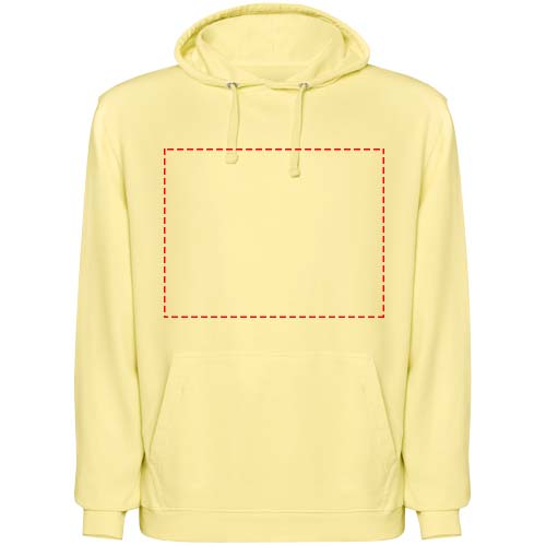 Unisex kapučjakas džersis ar skābi mazgājošu apdari. 2x1 rievotas aproces un apakšmala. Kapuce ar vienkrāsainu džersiju, kas oderēta tonī, ar pieskaņotām plakanām šņorēm. Tonī šuve apkakles daļā. Kengura kabata.