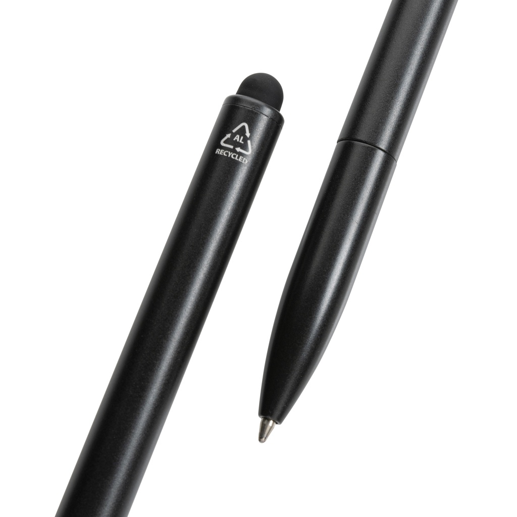 Kymi RCS sertificēta pārstrādāta alumīnija pildspalva ar irbuli, melns