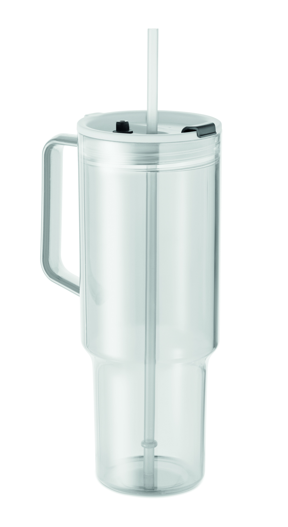 RPET glāze ar salmiņa vāku, ieskaitot PP salmiņu. Tilpums: 1200 ml.