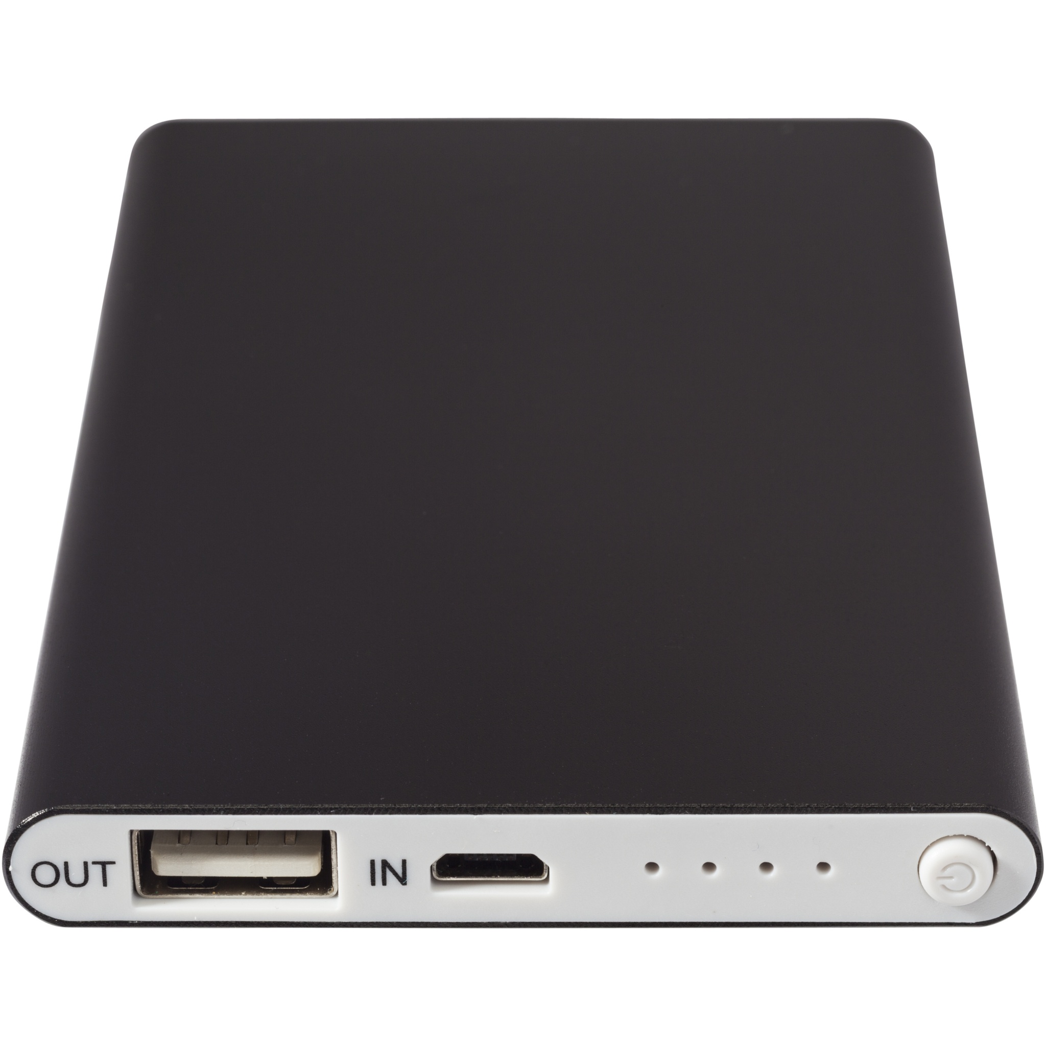 Алюминиевый повербанк Pep емкостью 4000 мА/ч, Сплошной черный