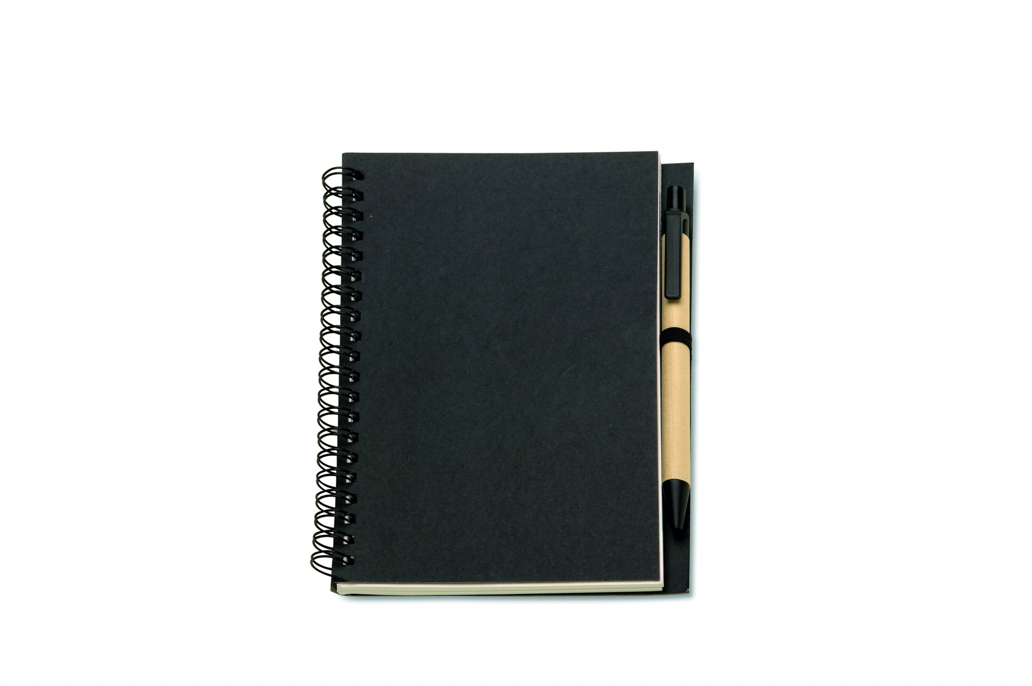 Блокнот с картонной обложкой. Включает 70 страниц вторично переработанной бумаги и синюю шариковую ручку из биопластика.