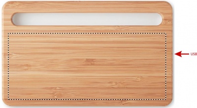 Wireless charger with bamboo top, USB hub and smartphone stand/holder. USB output DC5V/1A (5W). Wireless output: DC5V/1A. Compatible latest androids, iPhone® 8, X and newer. Including type-C cable. As bamboo is a natural material, the colour per item can vary.