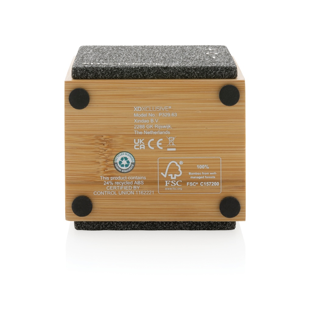 Роскошный динамик мощностью 5 Вт с чистым звуком и мощными басами. Внешний корпус изготовлен из бамбука, сертифицированного FSC на 100%. Пластиковые компоненты изготовлены из переработанного АБС-пластика, сертифицированного по стандарту RCS (Recycled Claim Standard). Общее содержание переработанных материалов: 24 % от общего веса изделия. Сертификация RCS гарантирует полностью сертифицированную цепочку поставок переработанных материалов. Динамик оснащен Bluetooth 5.1 для легкой и плавной работы на расстоянии до 10 метров и низкого энергопотребления. Аккумулятор емкостью 1200 мАч обеспечивает до 6 часов воспроизведения и может быть полностью перезаряжен за 2 часа. С функцией подхвата и микрофоном для ответа на (видео) звонки. Упакован в крафт-бокс FSC mix. Включает сертифицированный RCS переработанный кабель для зарядки TPE.
