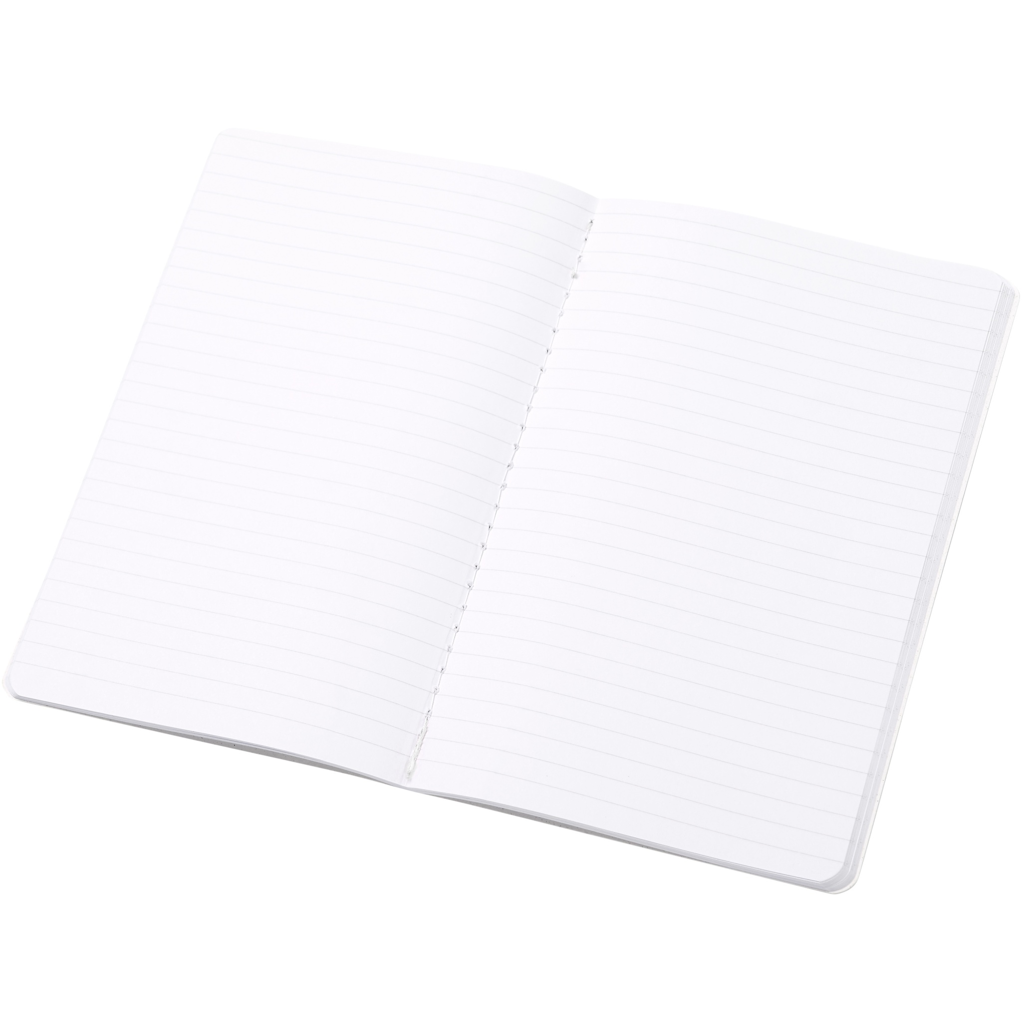 Легкий и гибкий блокнот для повседневных заметок. Обложка сертифицирована FSC и изготовлена из остатков кофе (15 %), оливок (15 %) и 40 % переработанных бытовых отходов. Имеет видимую белую строчку на корешке, 40 листов из белой, на 100 % переработанной бумаги (согласно FSC) плотностью 70 г/м². Страницы линованные. Сделано в Италии.