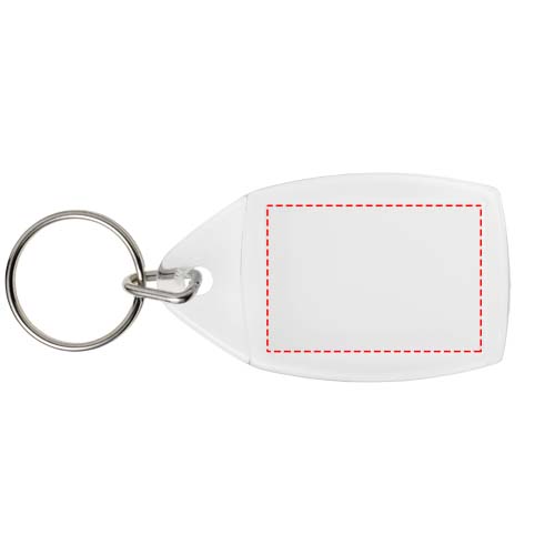 Прозрачный брелок с металлическим разъемным кольцом. Металлическая петля для крепления кольца представляет собой плоский профиль, что делает его идеальным для пересылки. Размеры печатной вставки: 3,5 см x 2,4 см.