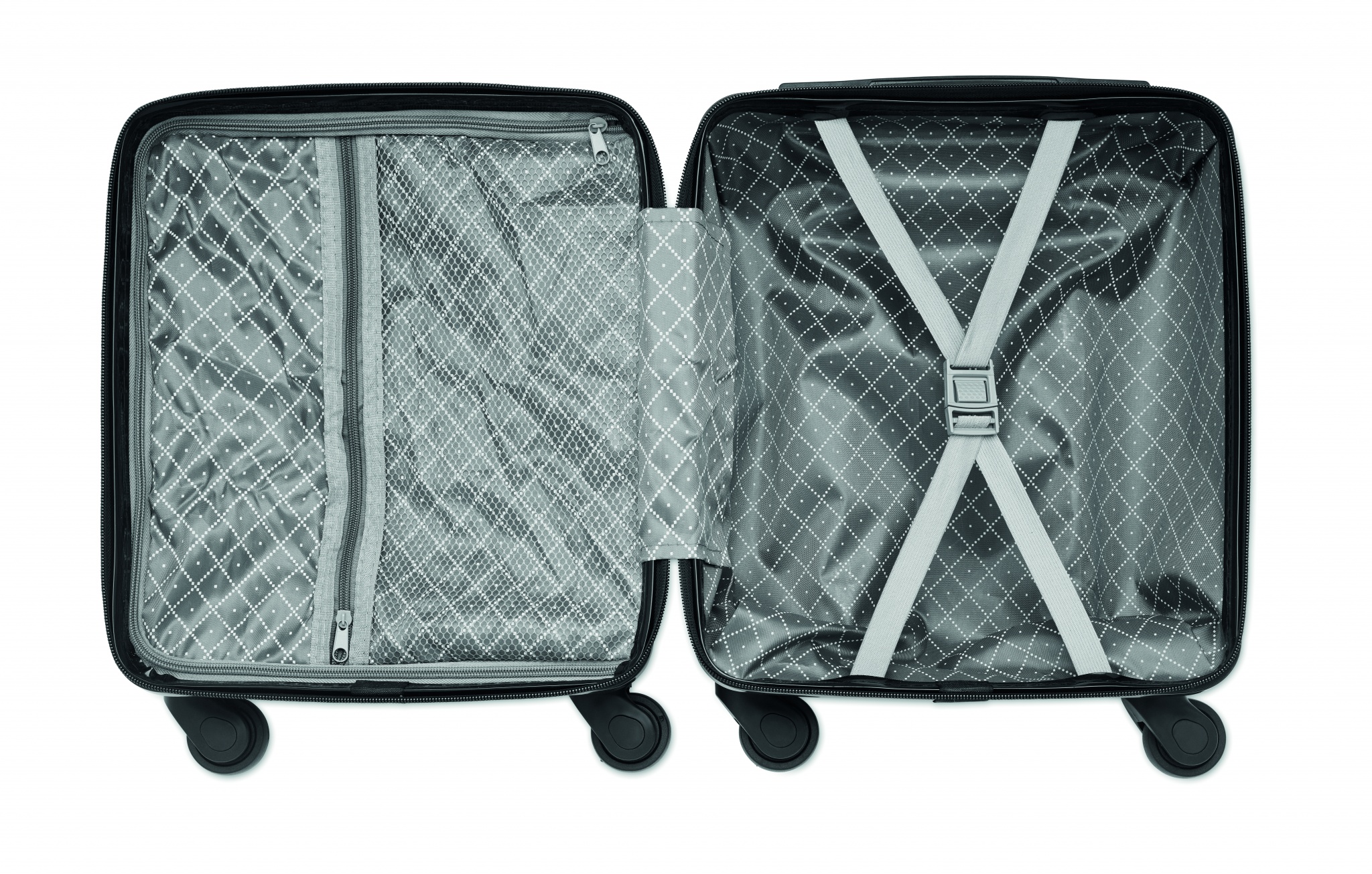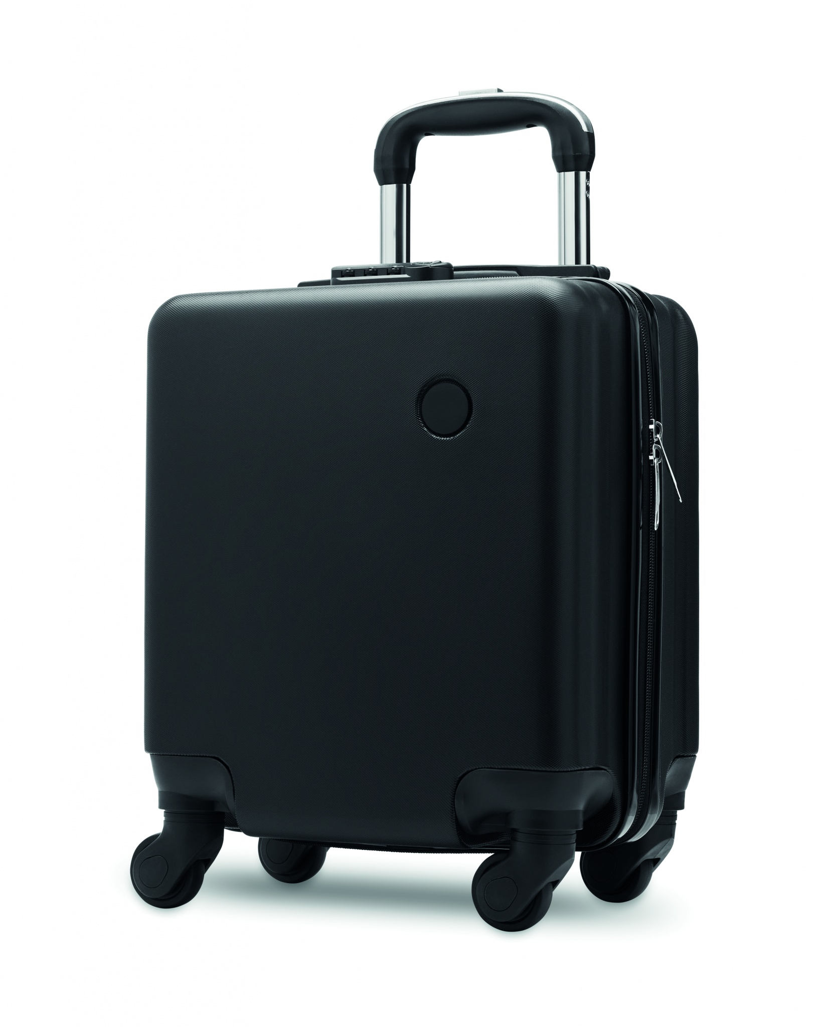 14-дюймовый пластиковый чемодан на 4 колесах. Имеет внутренний карман на молнии. Комбинированный замок и двойная трубчатая рама.