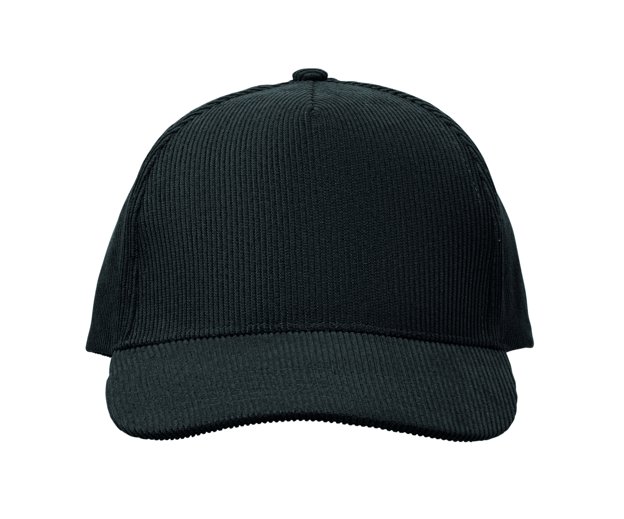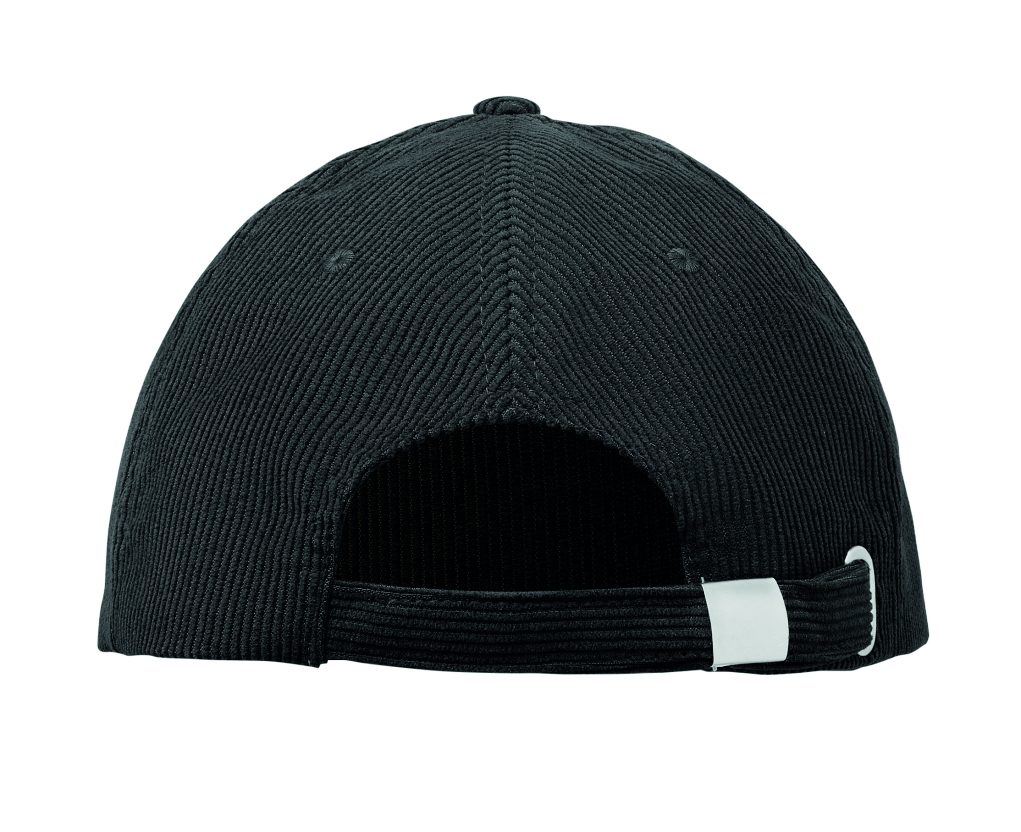5 panel baseball cap in polyester corduroy with adjustable metal buckle closure. 220 gr/m².