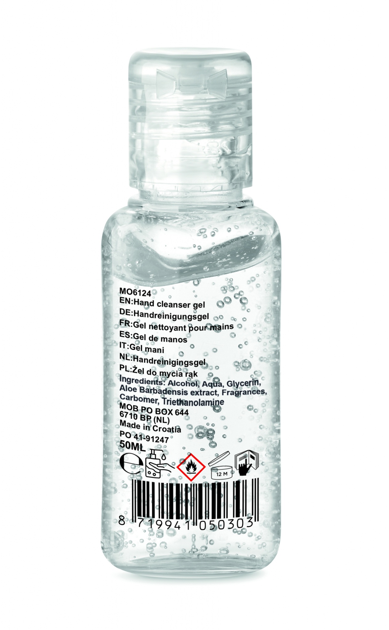 Гель для мытья рук в ПЭТ-флаконе с откидной крышкой. Емкость 50мл. 70% -спиртовая композиция. Сделано в ЕС. Этот артикул относится к категории косметических товаров.