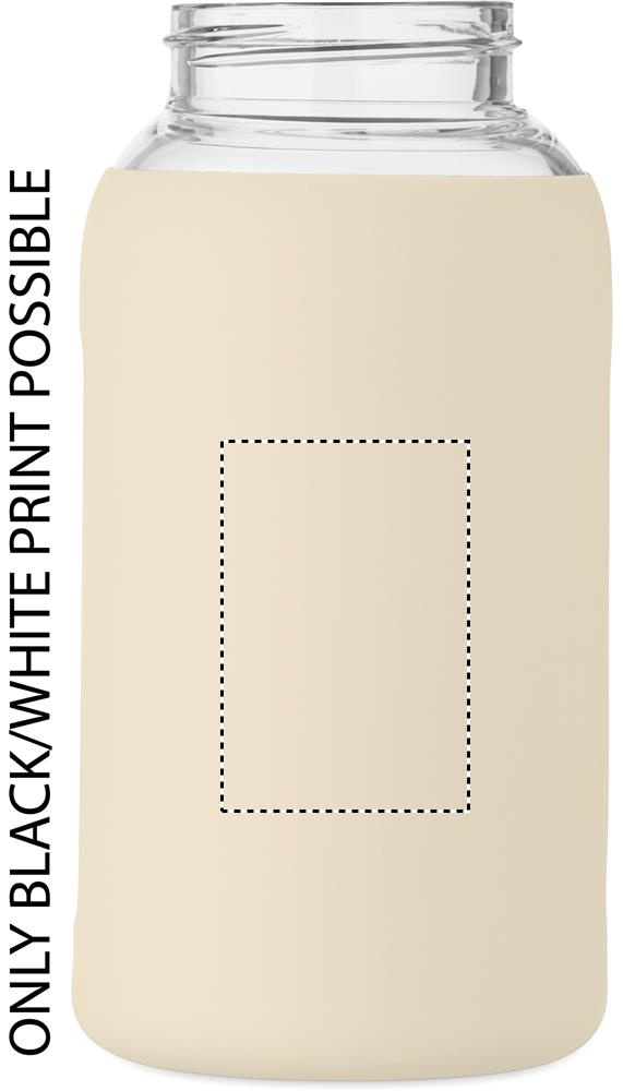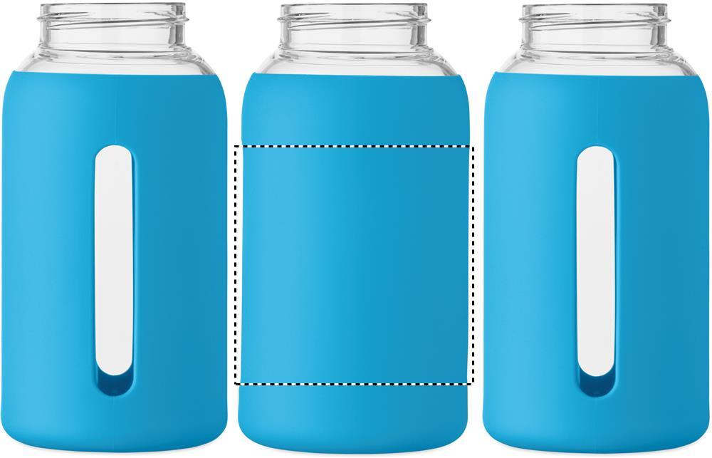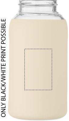 High borosilicate glass bottle with silicone pouch and PP lid with handle. Capacity: 600 ml