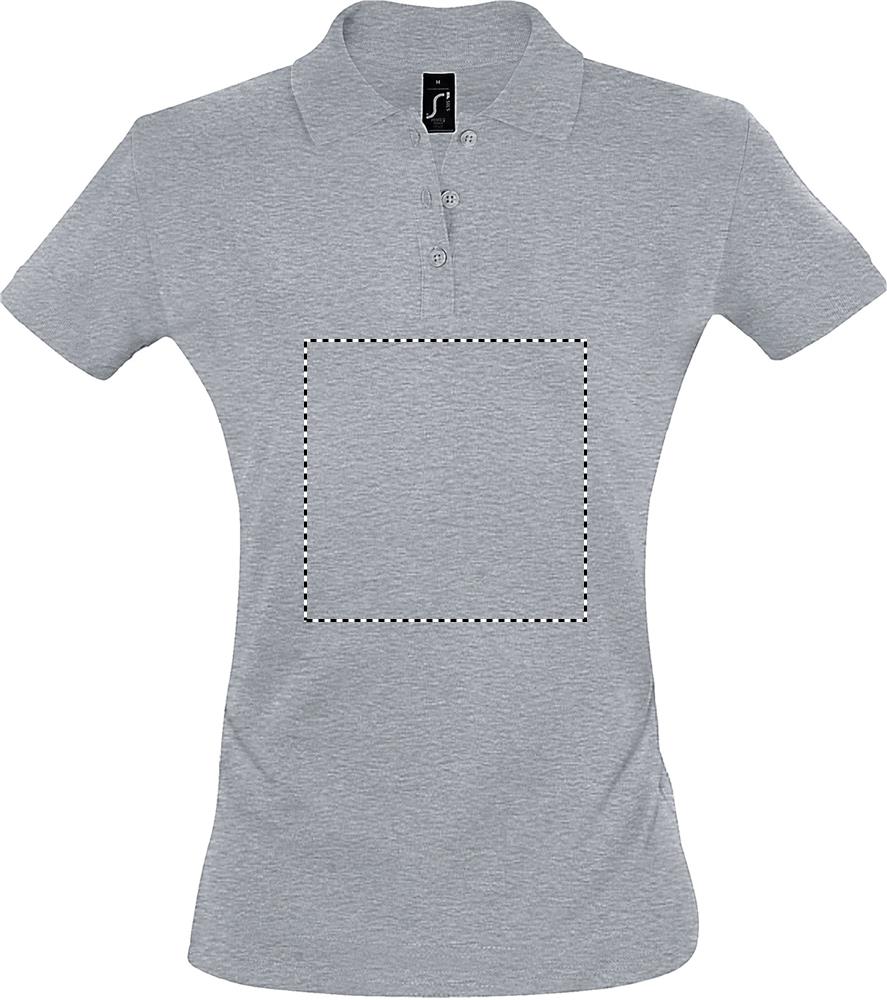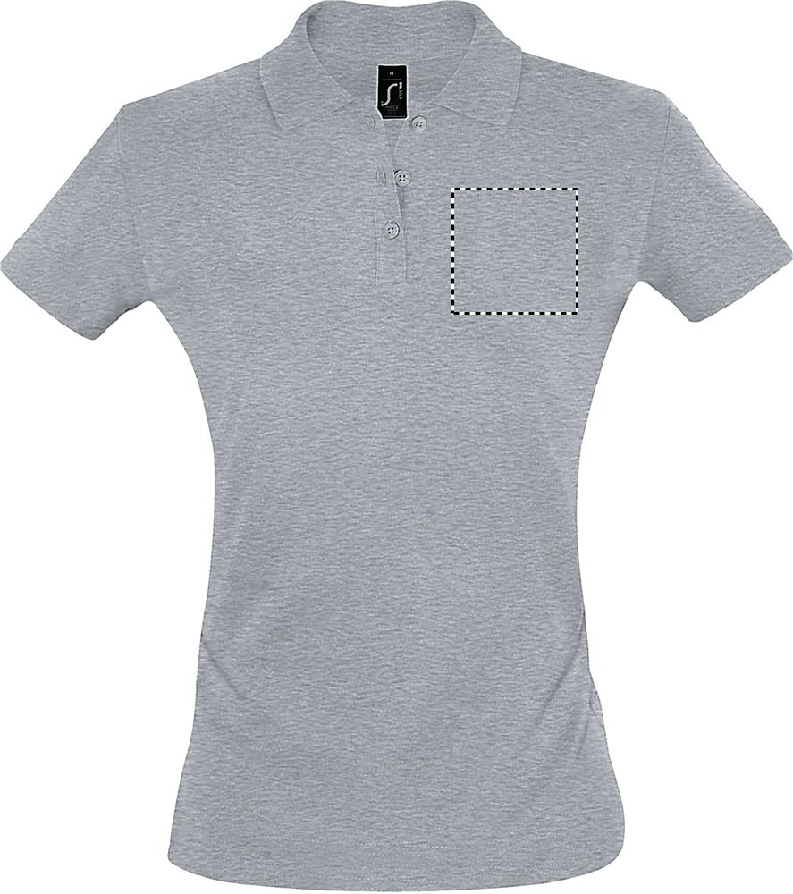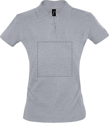 Женское поло SOL'S PERFECT из пике с ребристым воротником и манжетами 1x1, усиленный шов на горловине, 2 перламутровые пуговицы в тон, современный приталенный крой с боковым швом, запасная пуговица на внутренней стороне. Характеристики ткани: 180 г/м² 100% расчесанный хлопок с кольцевыми заклепками. OEKO-TEX®. Продается только с принтом