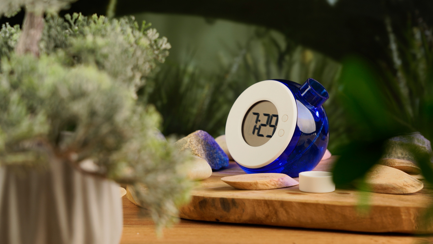 Этим водяным часам вообще не нужна батарейка. Пока бутылка на задней стороне часов заполнена водой, время и дата могут быть четко отображены. Одной заправки может хватить на несколько недель. Источник электричества вырабатывает воду, которая инициирует внутренние химические реакции. В воду, используемую для наполнения часов, необходимо добавить 2-3 г соли.