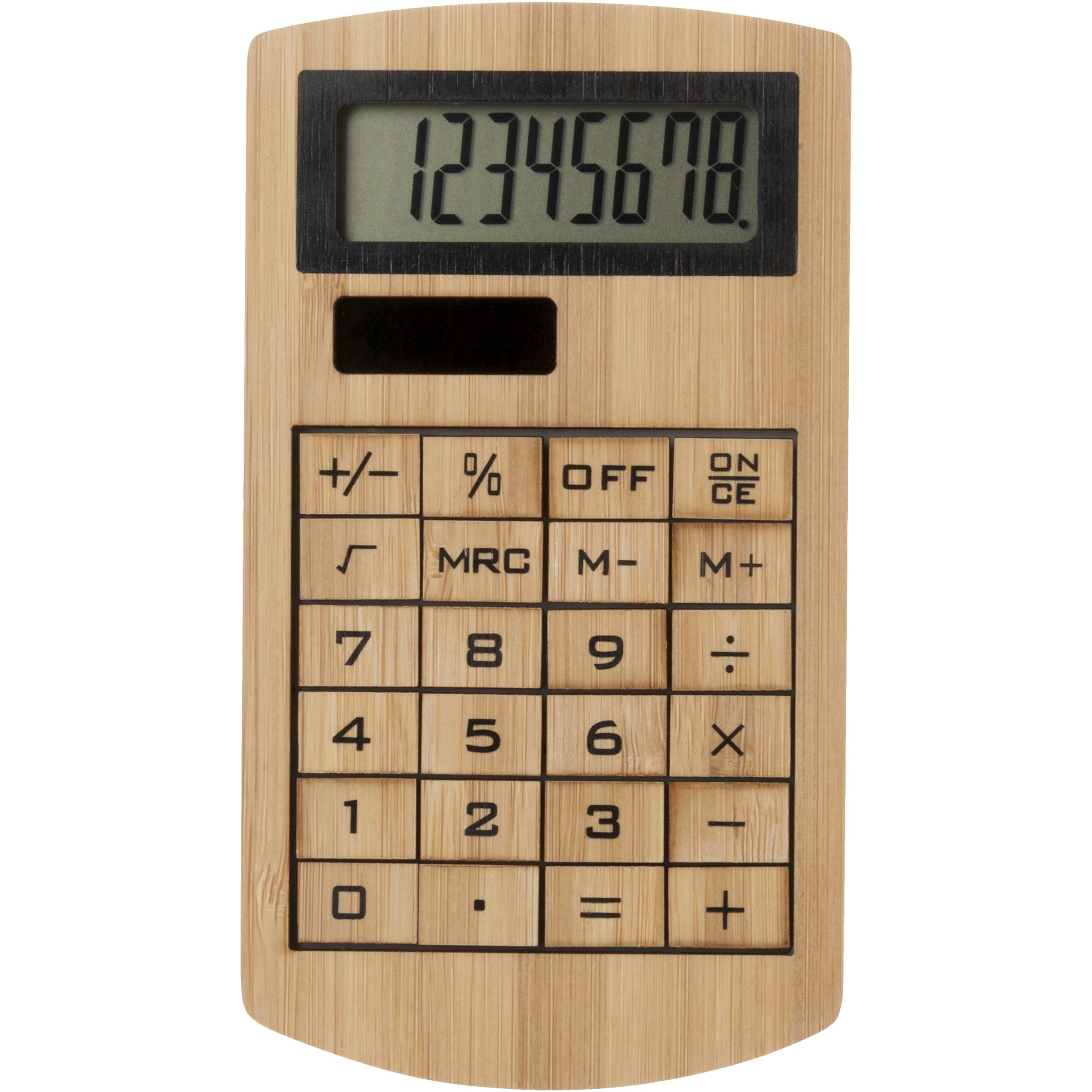 8-разрядный экологический бамбуковый калькулятор. Работает на солнечной энергии.