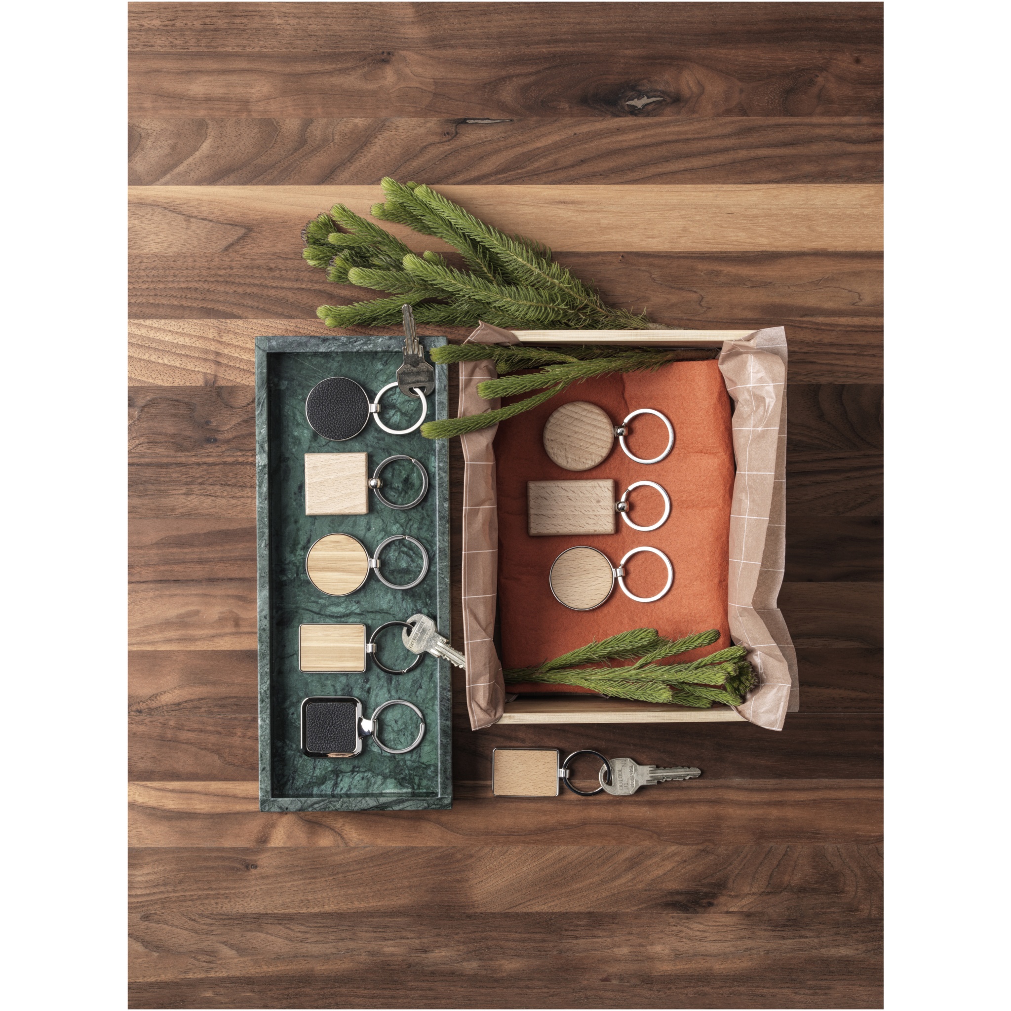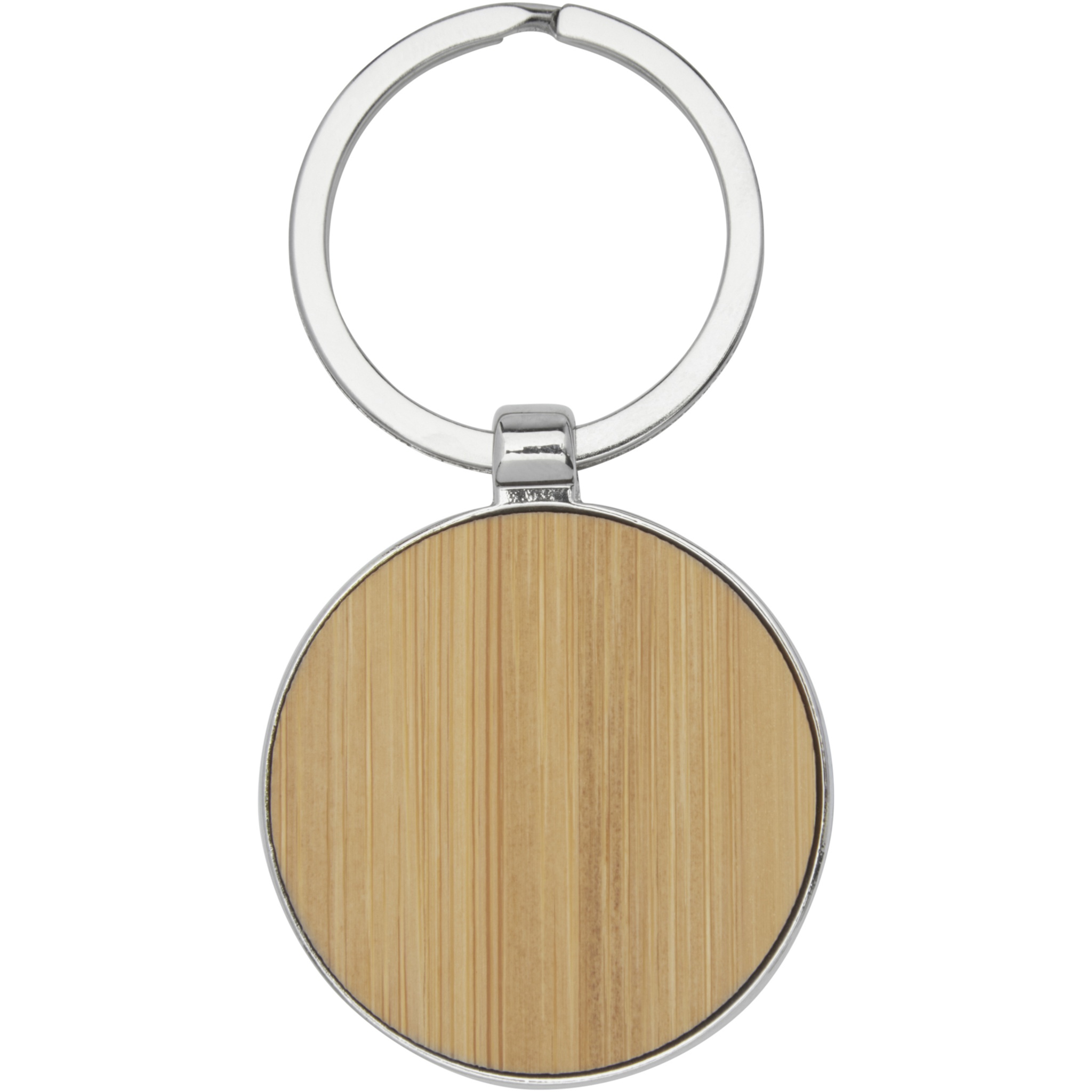 Круглый брелок премиум-качества из бамбука с металлическим корпусом из цинкового сплава, поставляемый в коричневой упаковке из шрифтовой бумаги. Диаметр брелка составляет 4 см. Подходит для лазерной гравировки.
