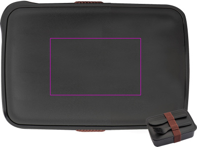 Ланч-бокс из полипропилена (без BPA). Благодаря встроенным столовым приборам, этот контейнер станет идеальным компаньоном. Его можно мыть в посудомоечной машине и использовать в микроволновой печи. Обратите внимание: логотип нельзя мыть в посудомоечной машине. Ваш логотип будет напечатан на крышке.