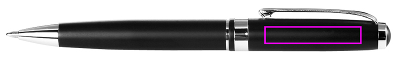 Высококачественная металлическая ручка матово-черного цвета с блестящими серебряными аппликациями и элегантным корпусом. Мы выгравируем ваш логотип под зажимом.