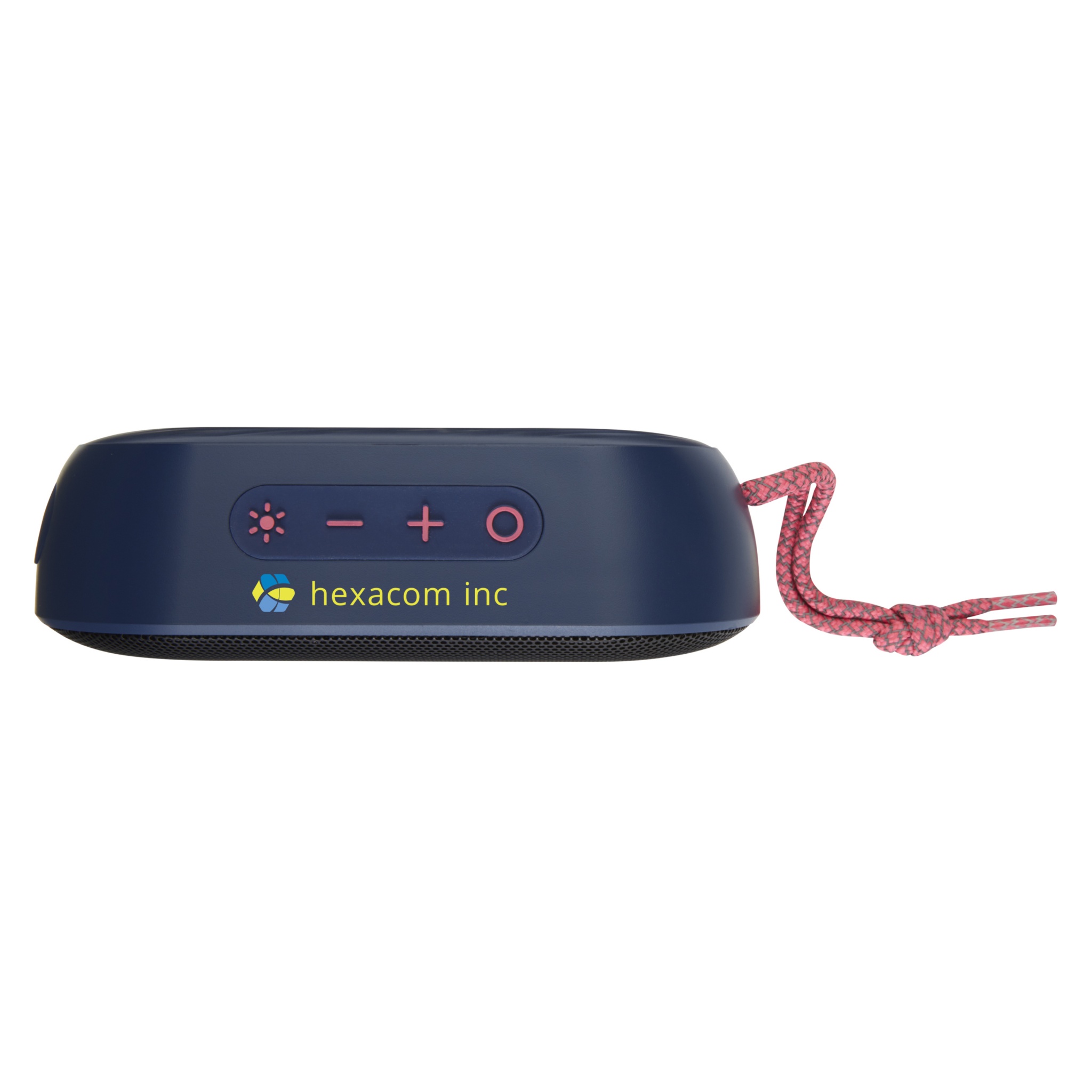 Мощная беспроводная колонка мощностью 7 Вт с RGB подсветкой, сертифицированная по стандарту IPX6, идеально подходит для мероприятий на открытом воздухе, таких как пикник, барбекю, отдых на пляже или вечеринка у бассейна. Встроенный аккумулятор емкостью 1500 мАч обеспечивает до 4 часов воспроизведения на максимальной громкости с включенной RGB-подсветкой. Bluetooth® 5.1 с радиусом действия до 10 метров. Встроенный микрофон, функция ответа и голосовой помощник для управления без использования рук. Колонка оснащена разъемом AUX и слотом для TF-карты (карта не входит в комплект). Поставляется в премиальной подарочной коробке.