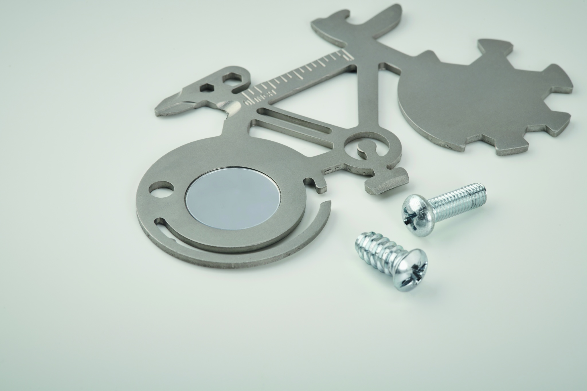 Мультиинструмент 11-в-1 из нержавеющей стали в форме велосипеда. Открывалка для бутылок, нож, линейка или крестовая отвертка.