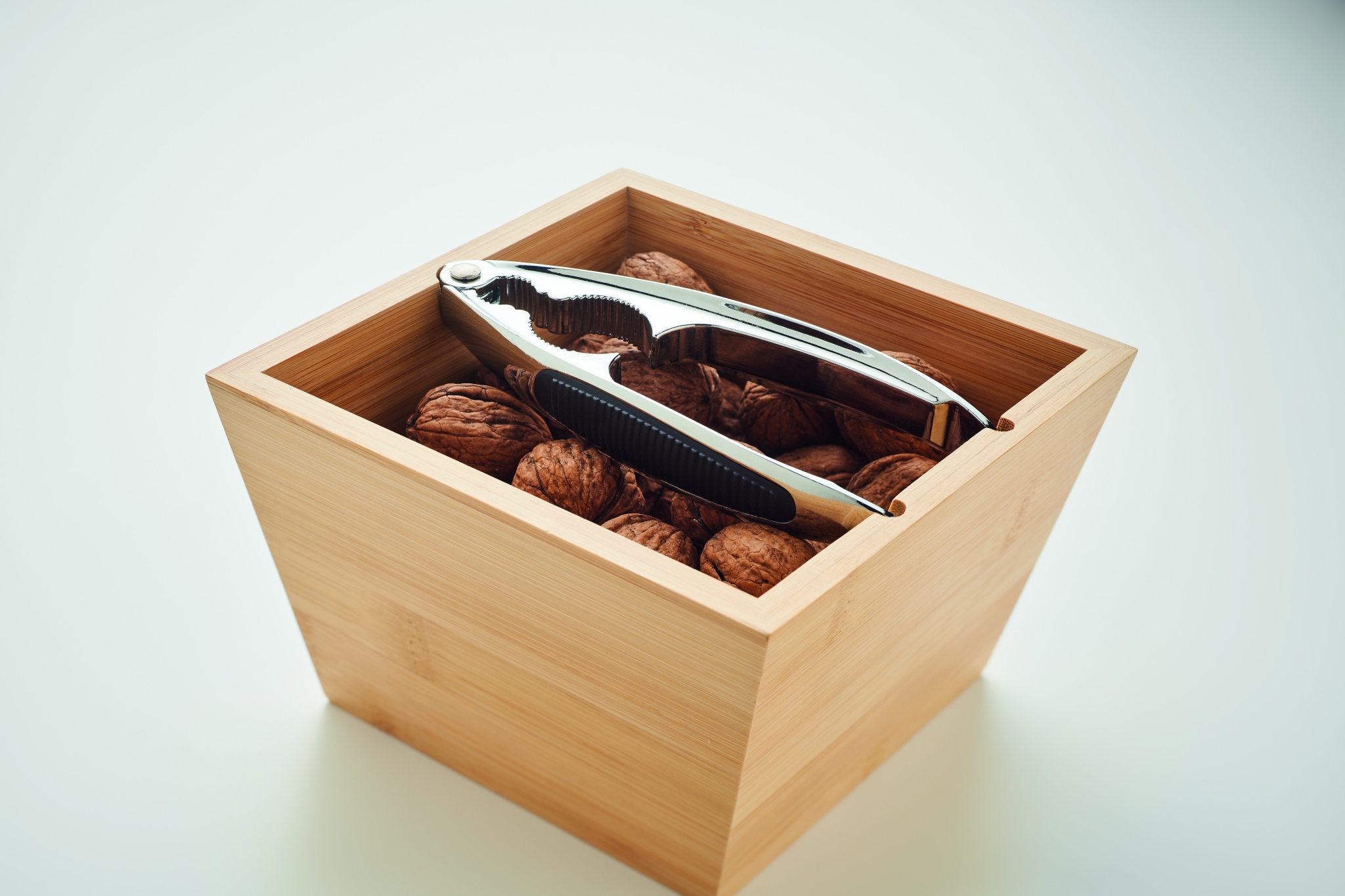 Набор для орехов с бамбуковой чашей и металлическим орехоколом из цинкового сплава и термопластичной резины