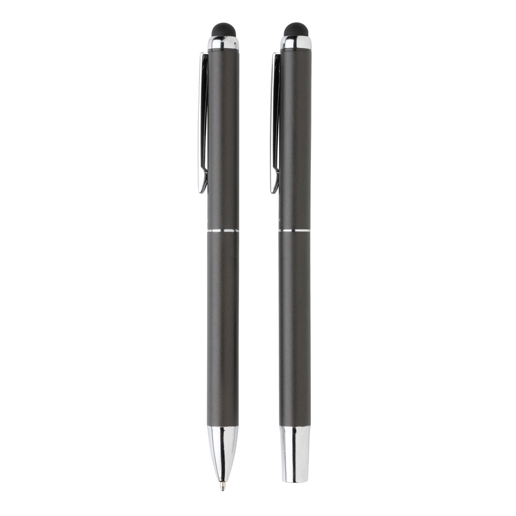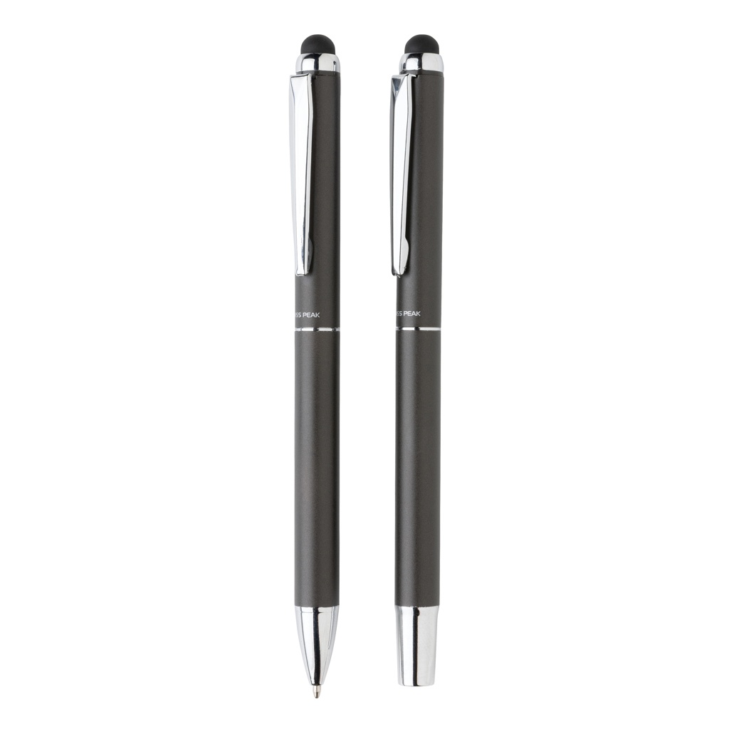 Этот набор ручек Swiss Peak deluxe включает в себя одну шариковую ручку и одну ручку-роллер, чтобы обеспечить полный опыт письма. Оба предмета, представленные в этом подарочном наборе, имеют качественный алюминиевый корпус и красивую матовую отделку цвета оружейной стали. Каждая ручка включает в себя синие чернила Dokumental. Длина письма для ручки составляет 1200 метров, а для ручки-роллера — 400 метров. Набор ручек поставляется в роскошном чехле из полиуретана и черной подарочной коробке.