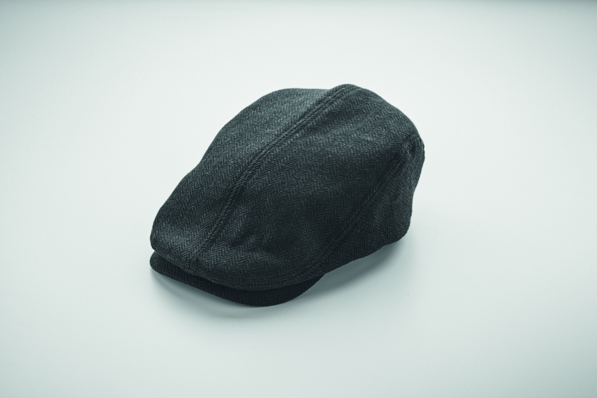 Newsboy flat cap mélange in 335 gr/m² polyester with metal buckle closure.
