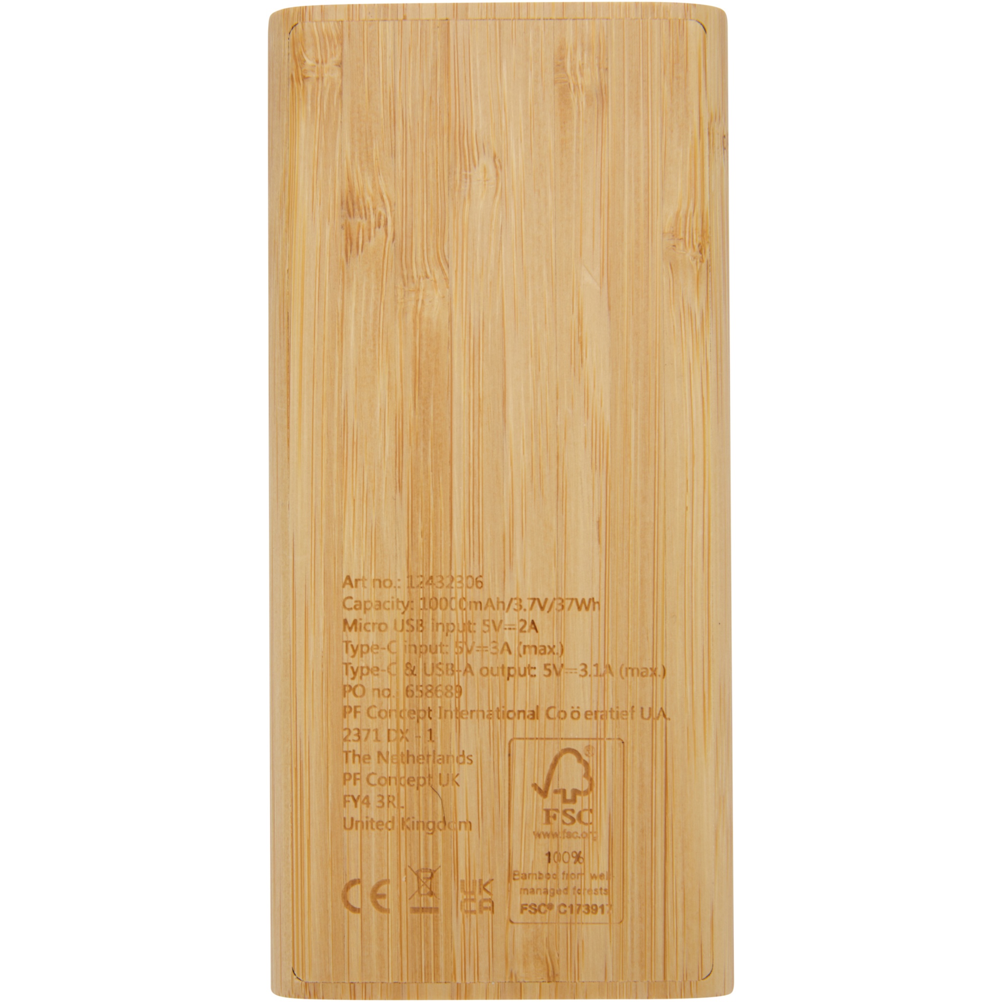 Портативное зарядное устройство Tulda из бамбука, 10,000 мАч