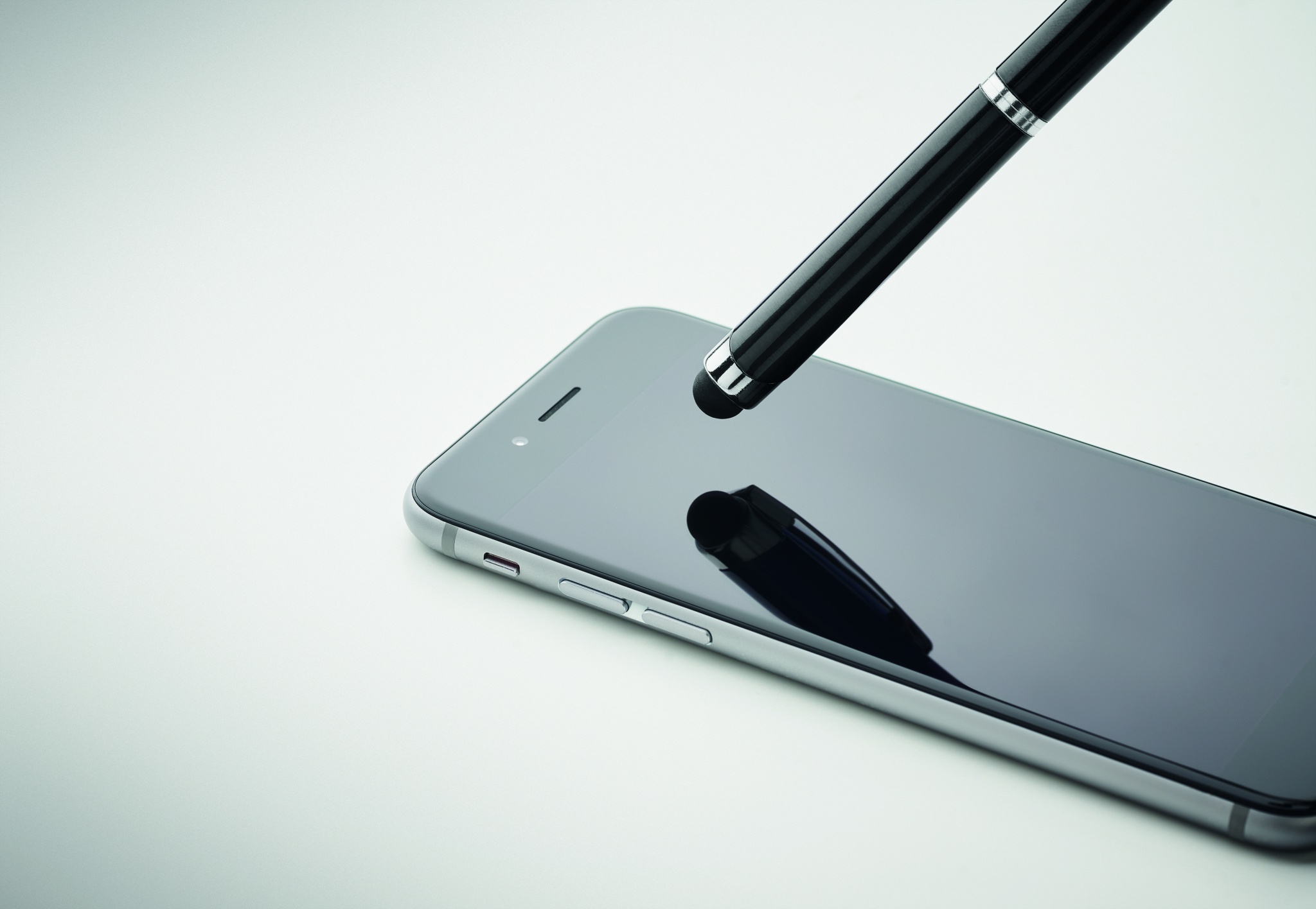 Шариковая ручка из переработанного алюминия со стилусом. Синие чернила.