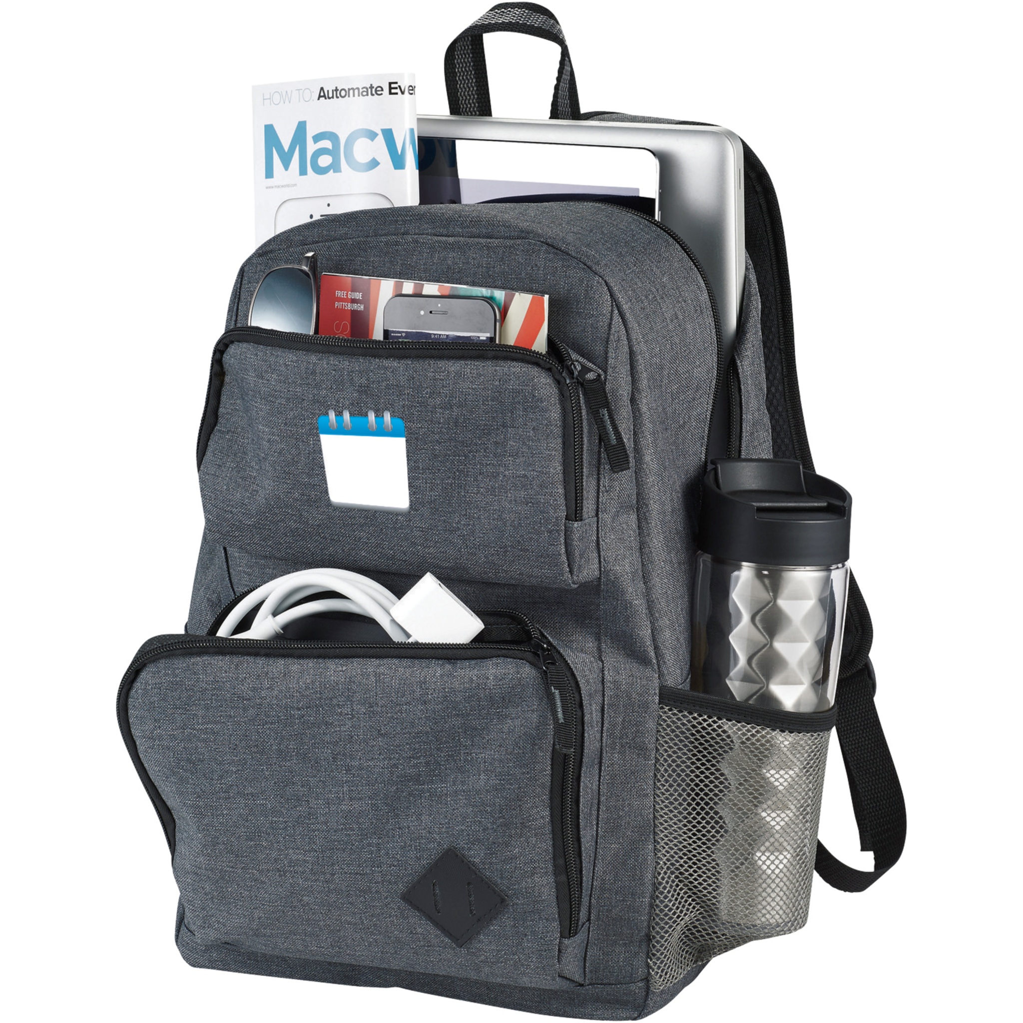Основное отделение на молнии с мягкой подкладкой с чехлом для большинства ноутбуков 15 дюйма с отдельным чехлом для планшета и других бизнес-аксессуаров. Два передних больших кармана с удобными местами для нанесения оформления для зарядных устройств, кабелей и других аксессуаров. Боковой карман для дополнительных предметов. Регулируемые плечевые ремни с мягкими подкладками и усиленная верхняя ручка. Реальный цвет рюкзака может незначительно отличаться в зависимости от особенностей принта, окраски и структуры ткани.