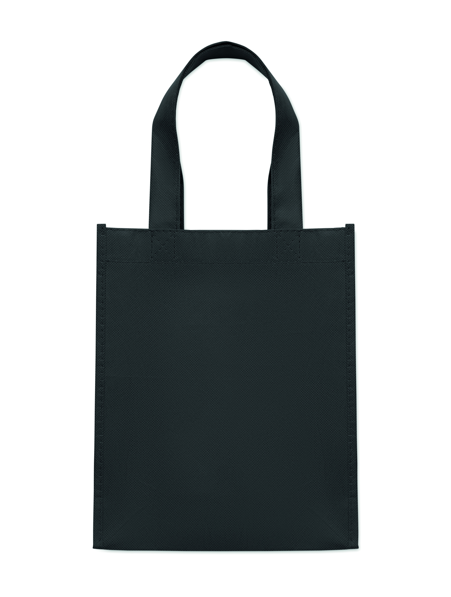 Small gift or goodie bag in RPET non-woven with short handles and gussets. 80 gr/m².