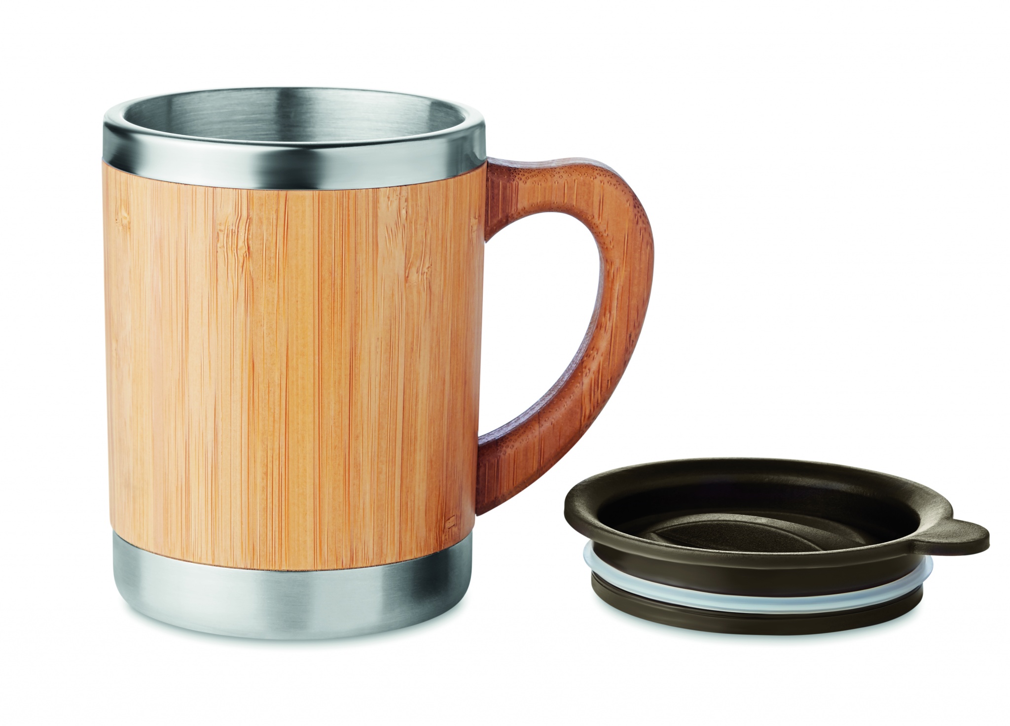 Термостакан из нержавеющей стали с двойными стенками, бамбуковой отделкой. Емкость 300 мл.
