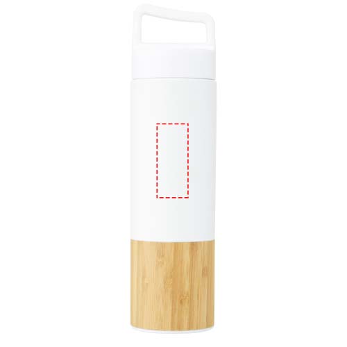 Бутылка из нержавеющей стали 18/8 с медной ваккумной изоляцией, которая сохраняет напитки горячими или холодными в течение нескольких часов. Имеет модный элемент из бамбука; бутылку легко носить с собой благодаря ручке на верхней части крышки. Бутылка имеет широкое горлышко, поэтому ее легко наполнять и мыть. Протестировано и одобрено согласно немецкому законодательству о безопасности пищевых продуктов (LFGB), а также проверено на содержание фталатов согласно нормам REACH. Объем 540 мл. В подарочной коробке из переработанного картона.