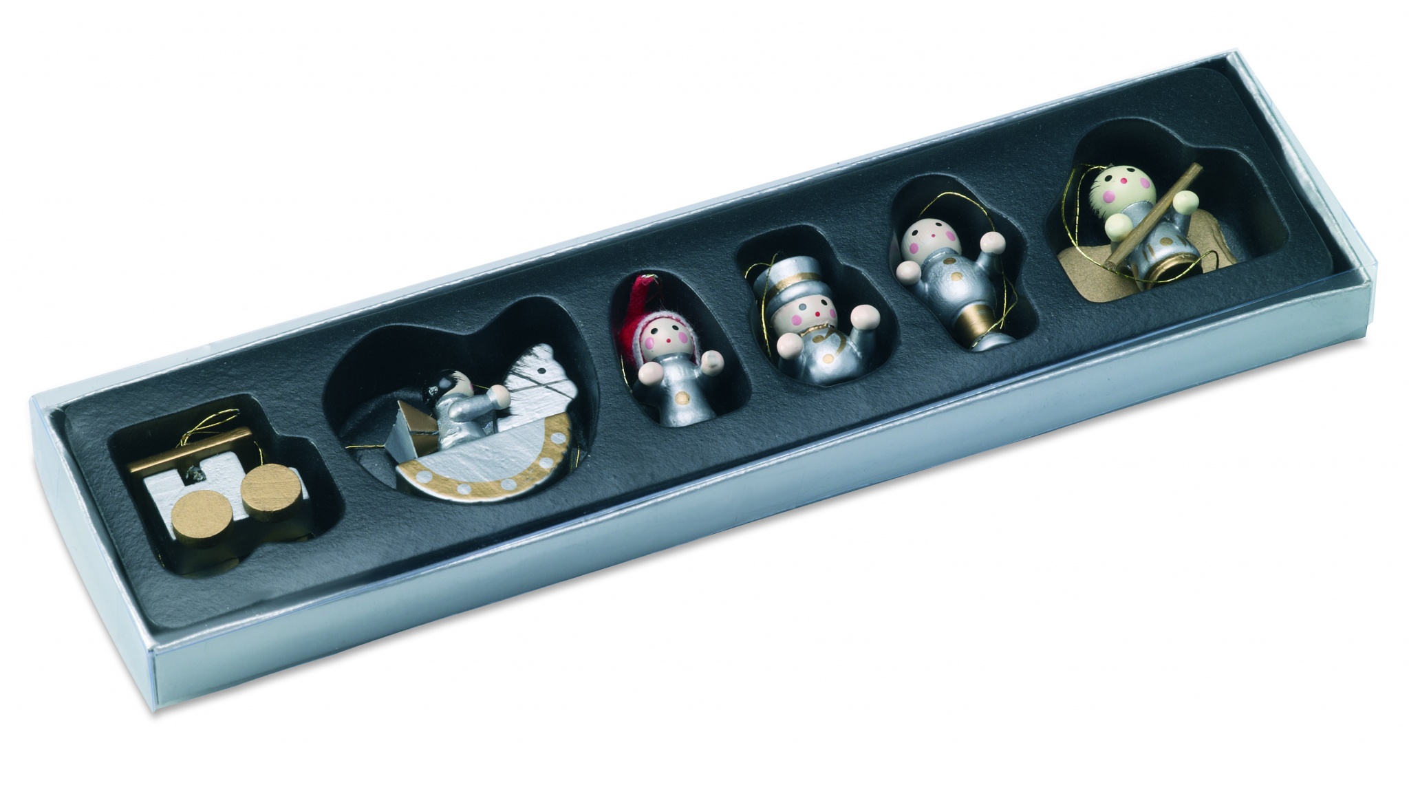Набор из 6 новогодних украшений в коробке с прозрачной крышкой.