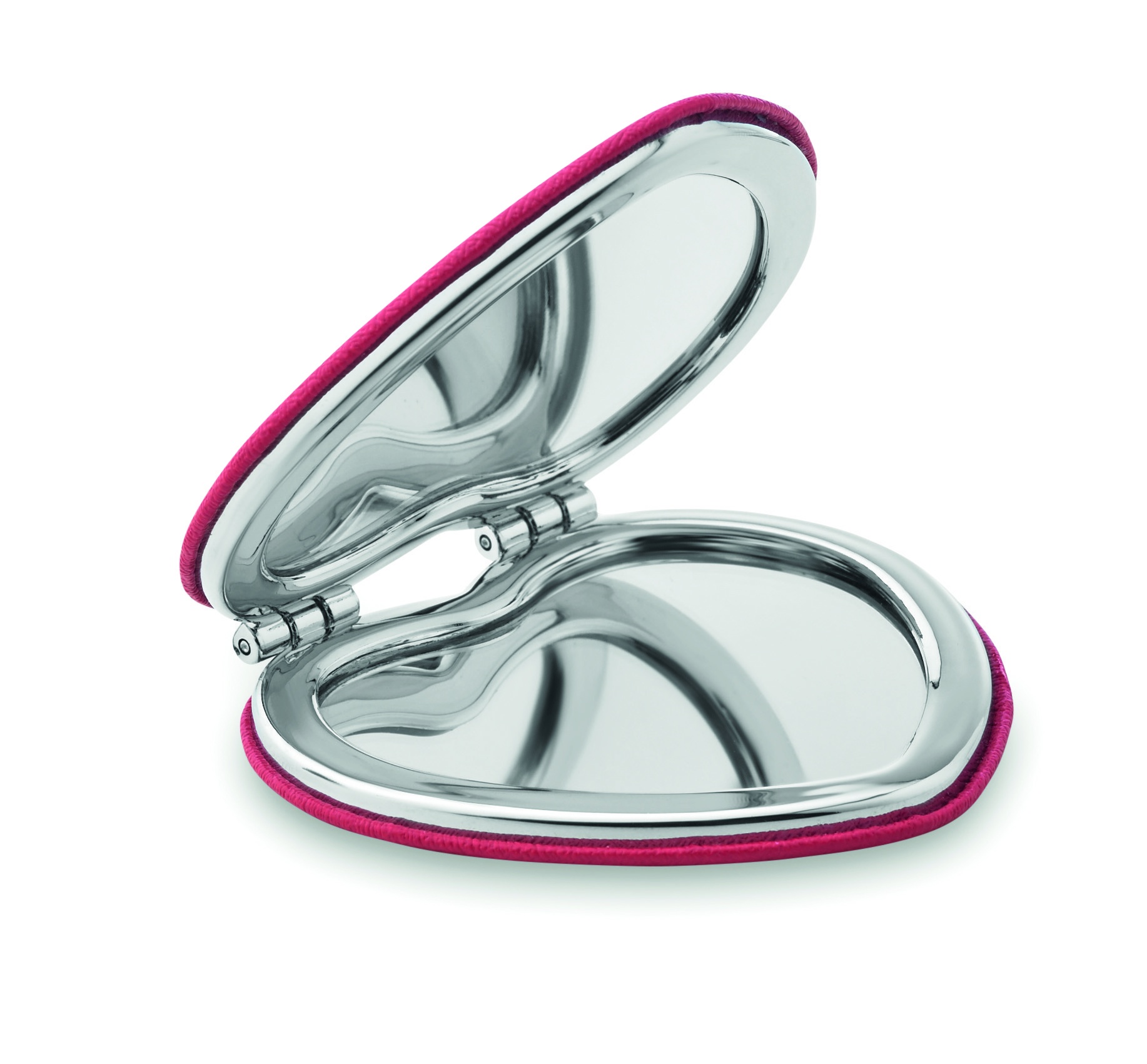 Двойное косметическое зеркальце в форме сердца на магните с покрытием из полиуретана.