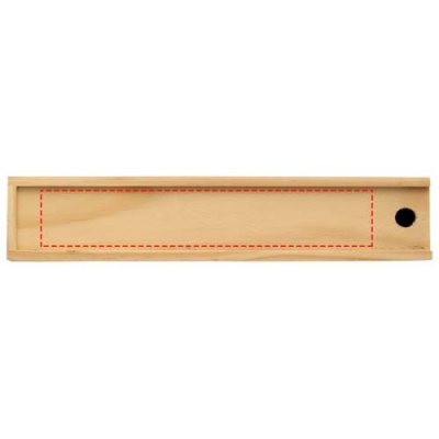 12 färgpennor i en trälåda med skjutlock som fungerar som en linjal på baksidan. Endast förpackning kan märkas.