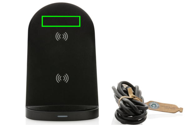 Logotrade kampanjprodukter bild: 15W trådlöst laddningsställ i RCS certifierad plast