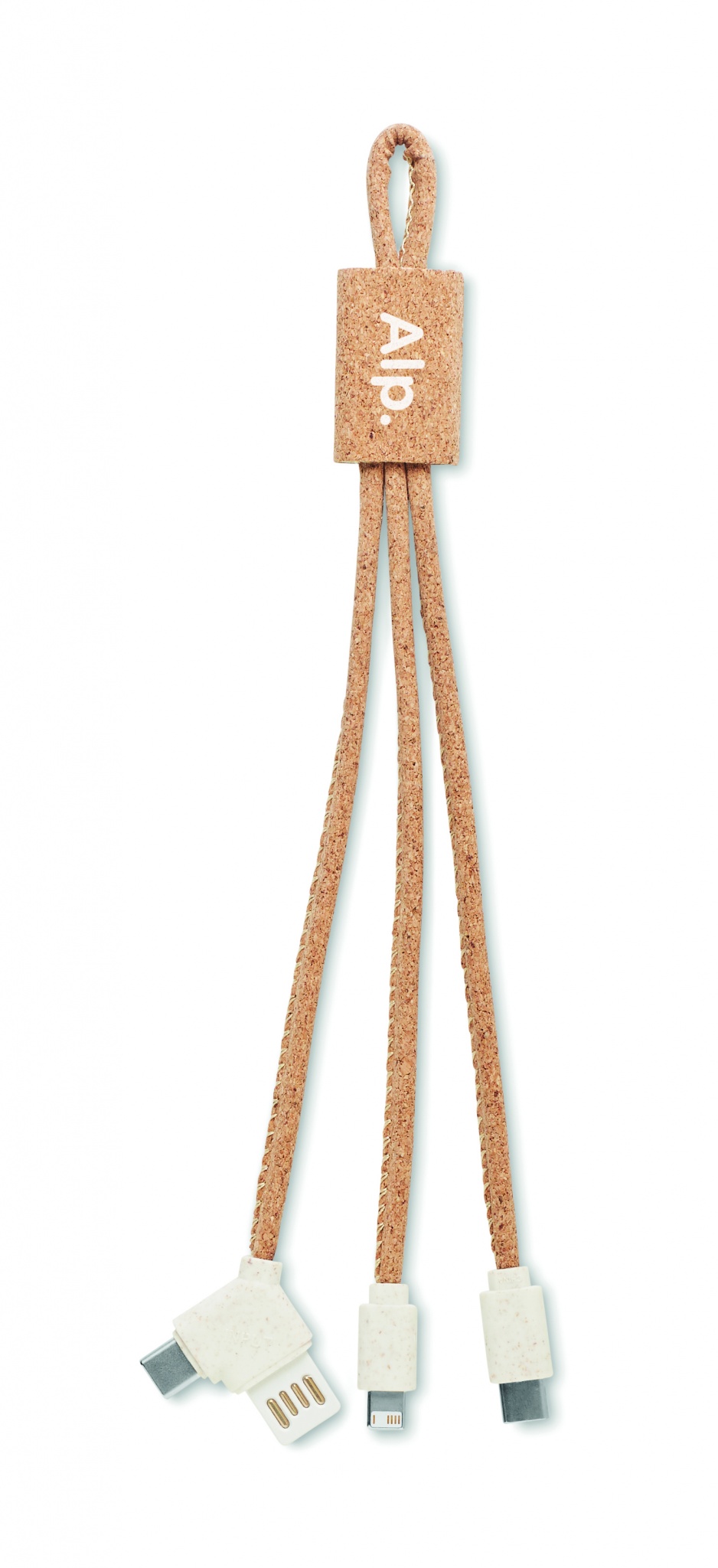 Logotrade reklamprodukter bild: 3 i 1 laddningskabel i kork