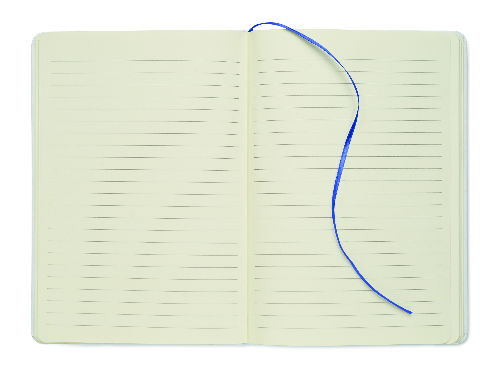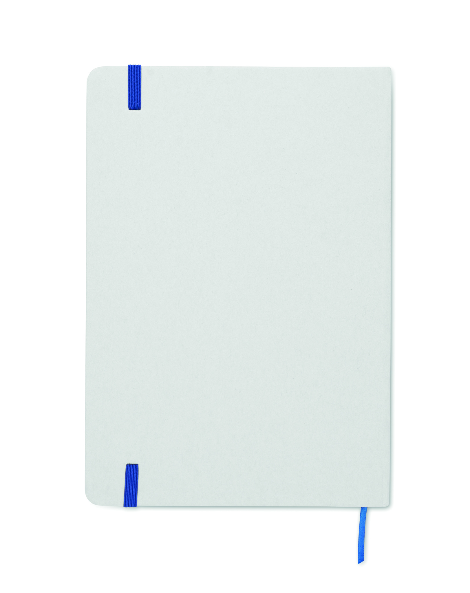 A5 anteckningsbok med omslag av hård återvunnen kartong. Svart omslag. Inbunden med 160 linjerade sidor av återvunnet papper (80 ark). Elastiskt stängnings- och läsband matchar den underliggande färgen. Efter lasergraveringen kommer logon att träda fram i samma färg som bandet.